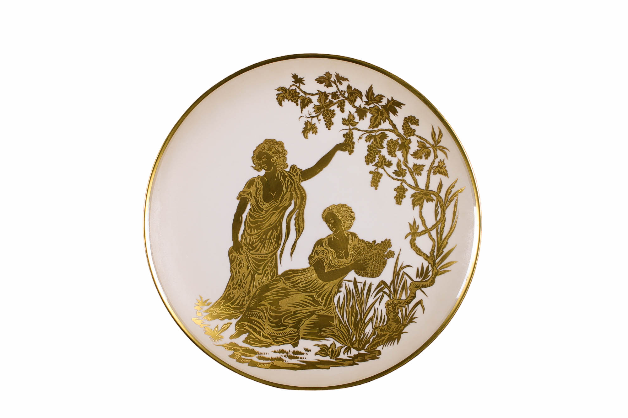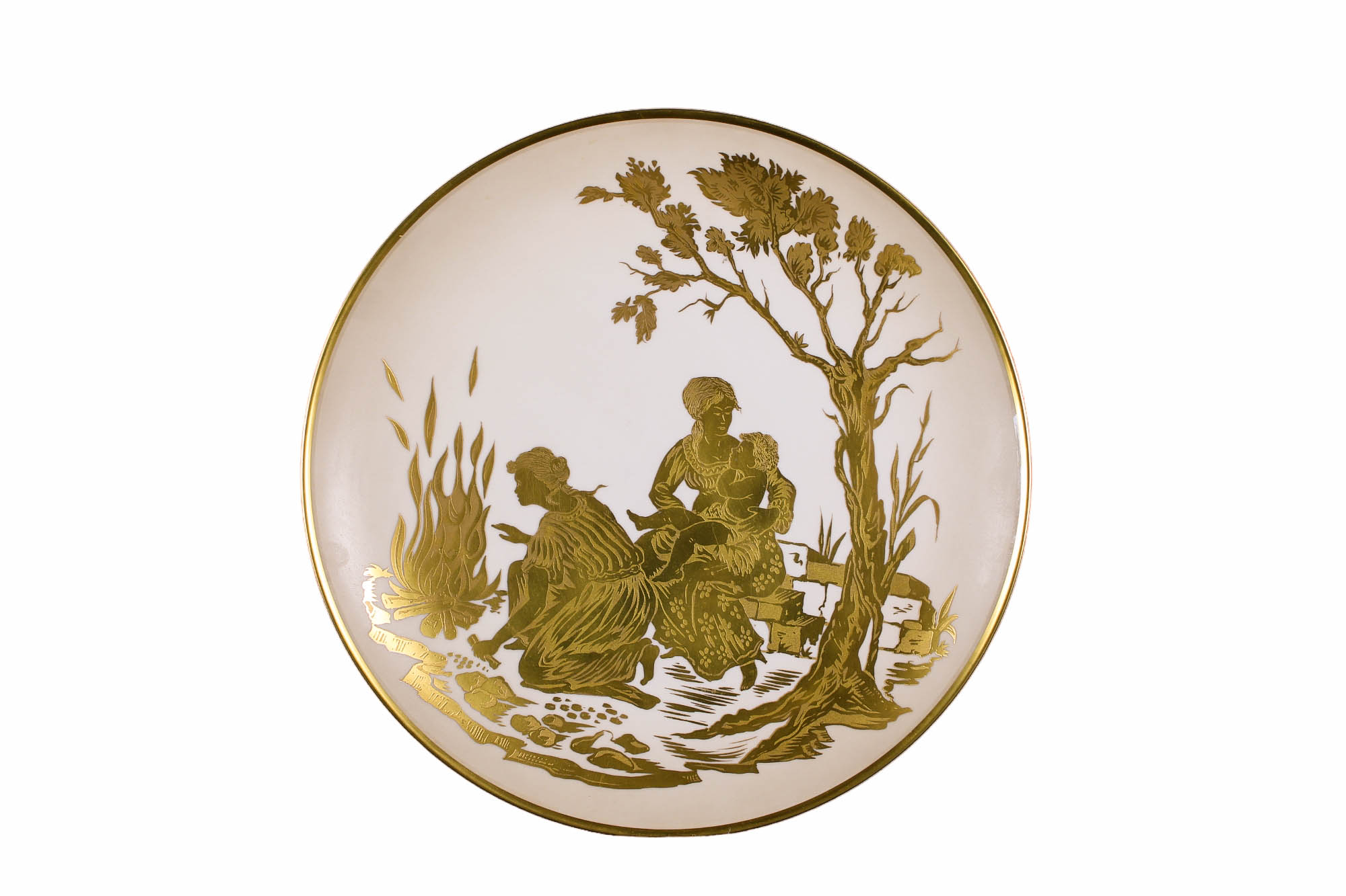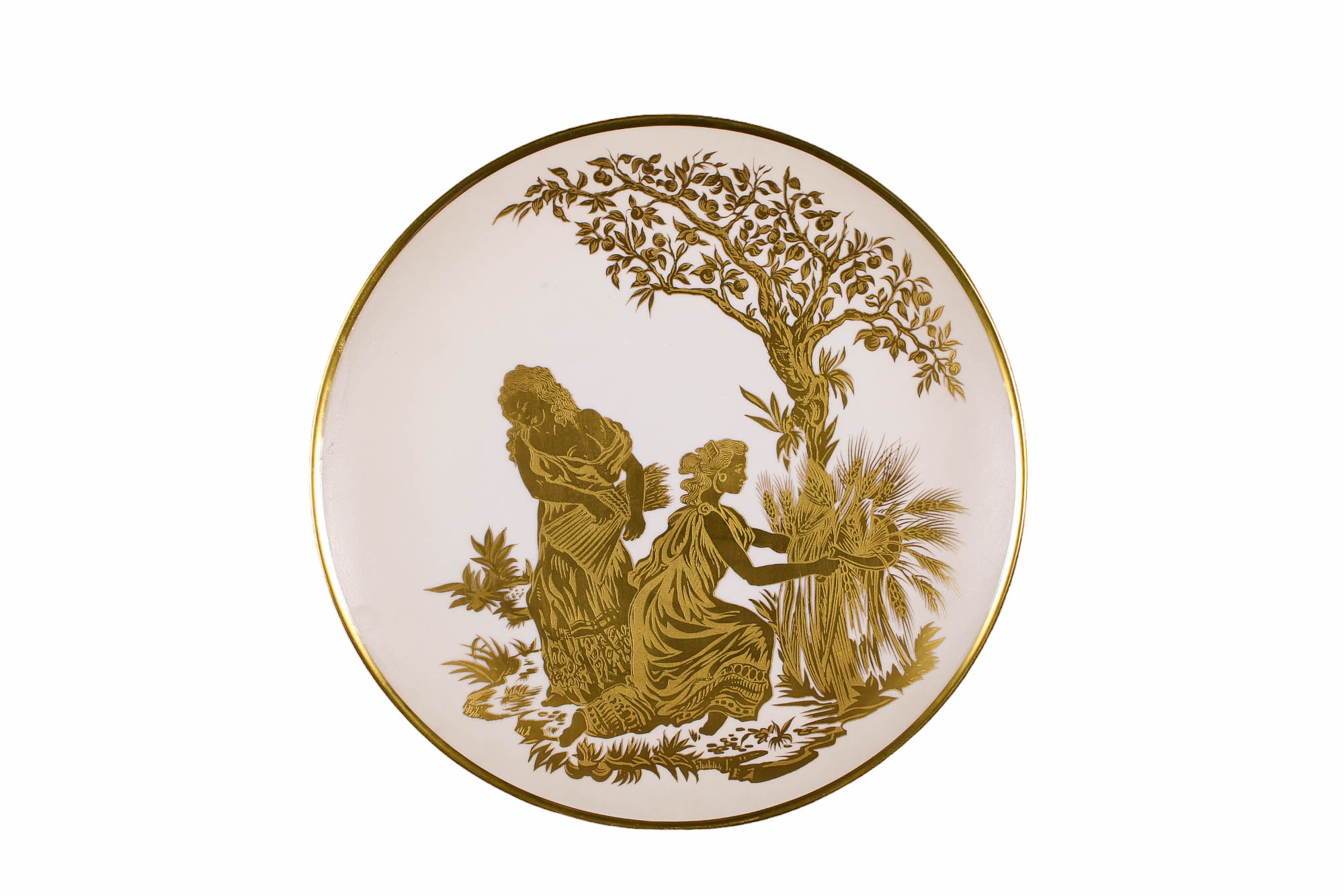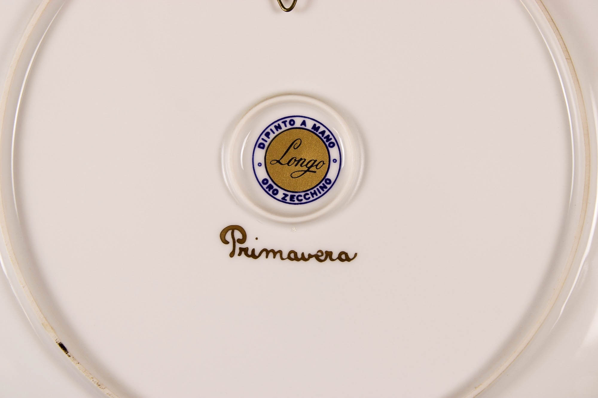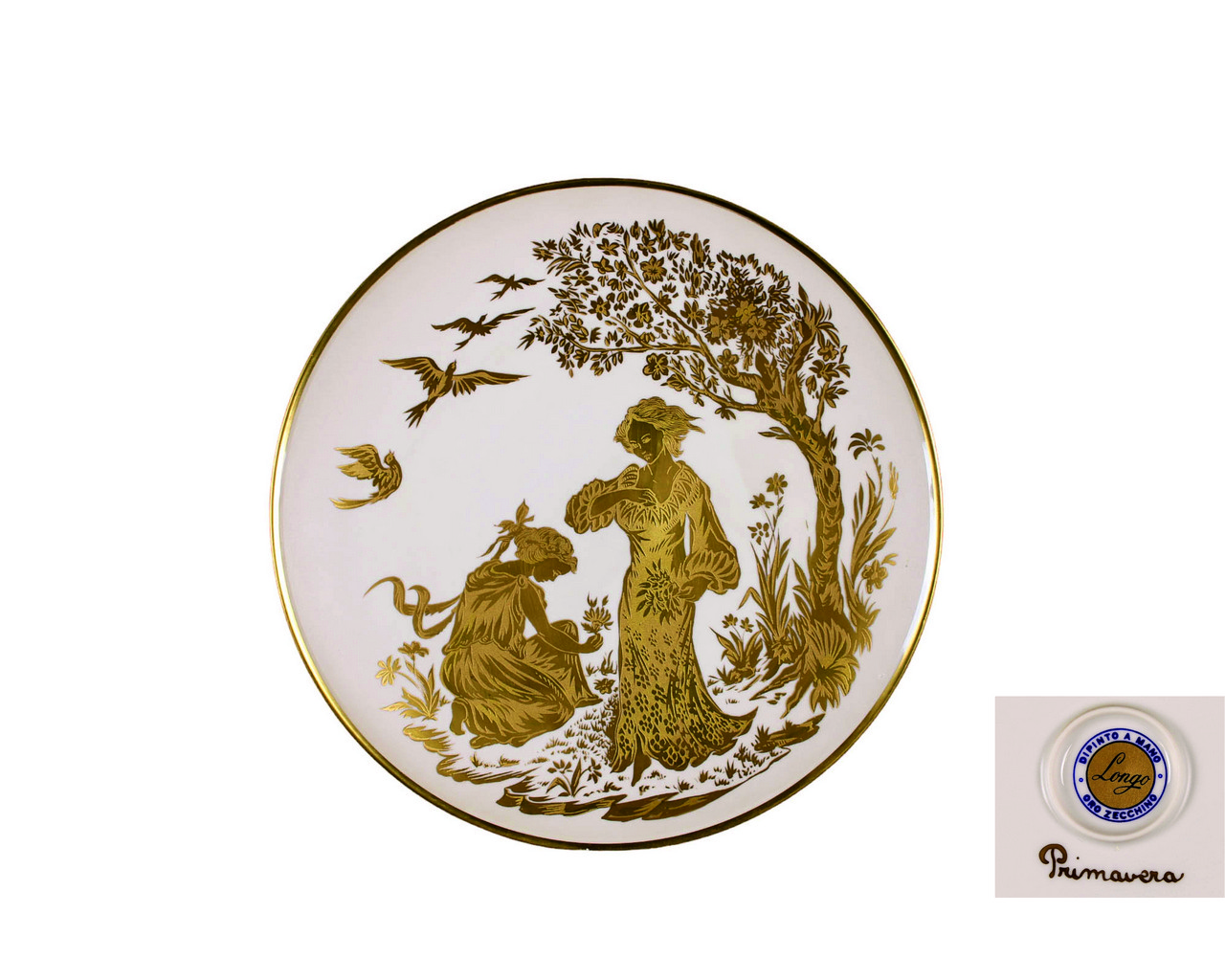QUATTRO PIATTI in porcellana decorati a oro zecchino raff le 4 stagioni manifattura longo XX secolo Ø 33,5