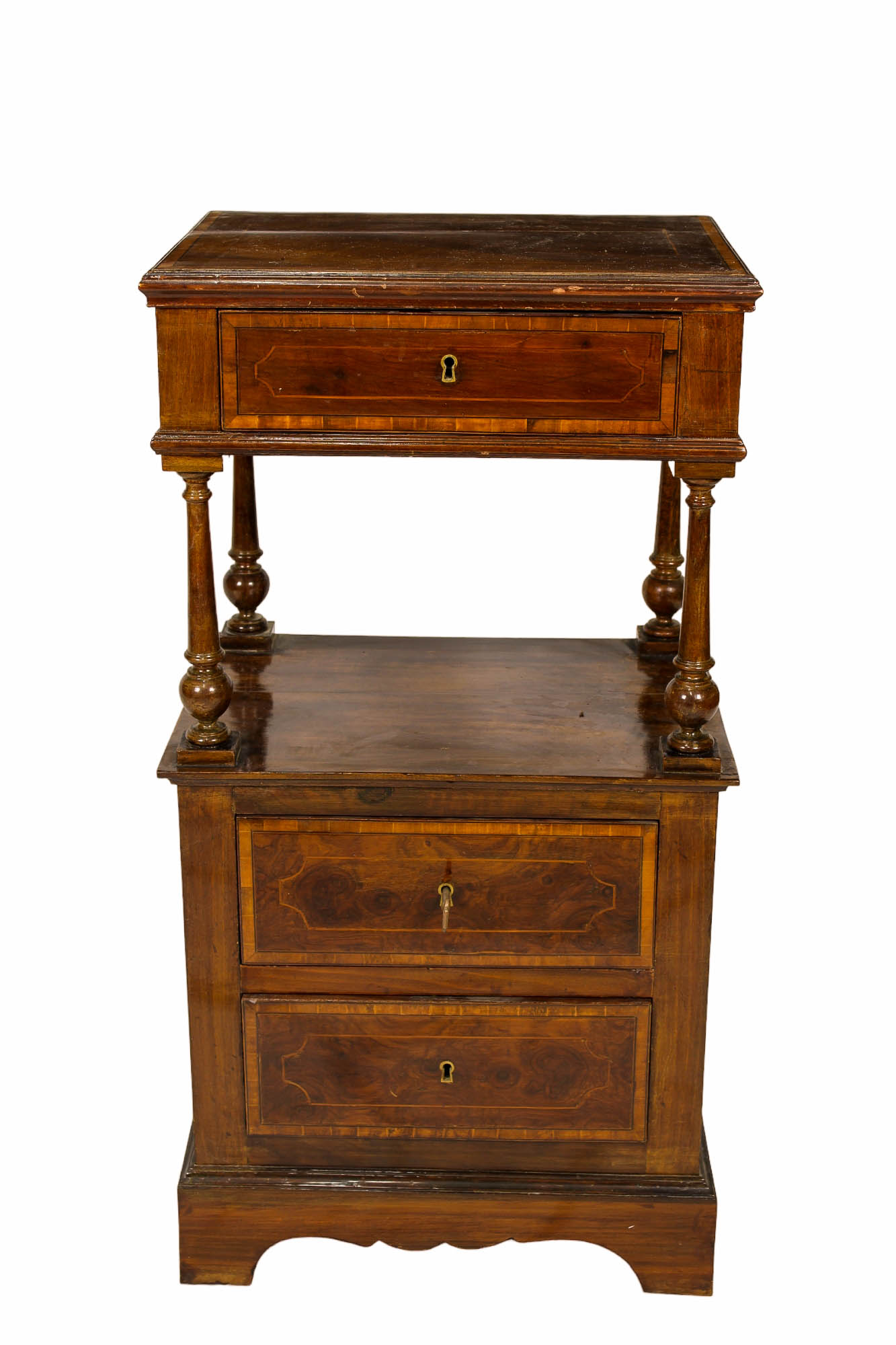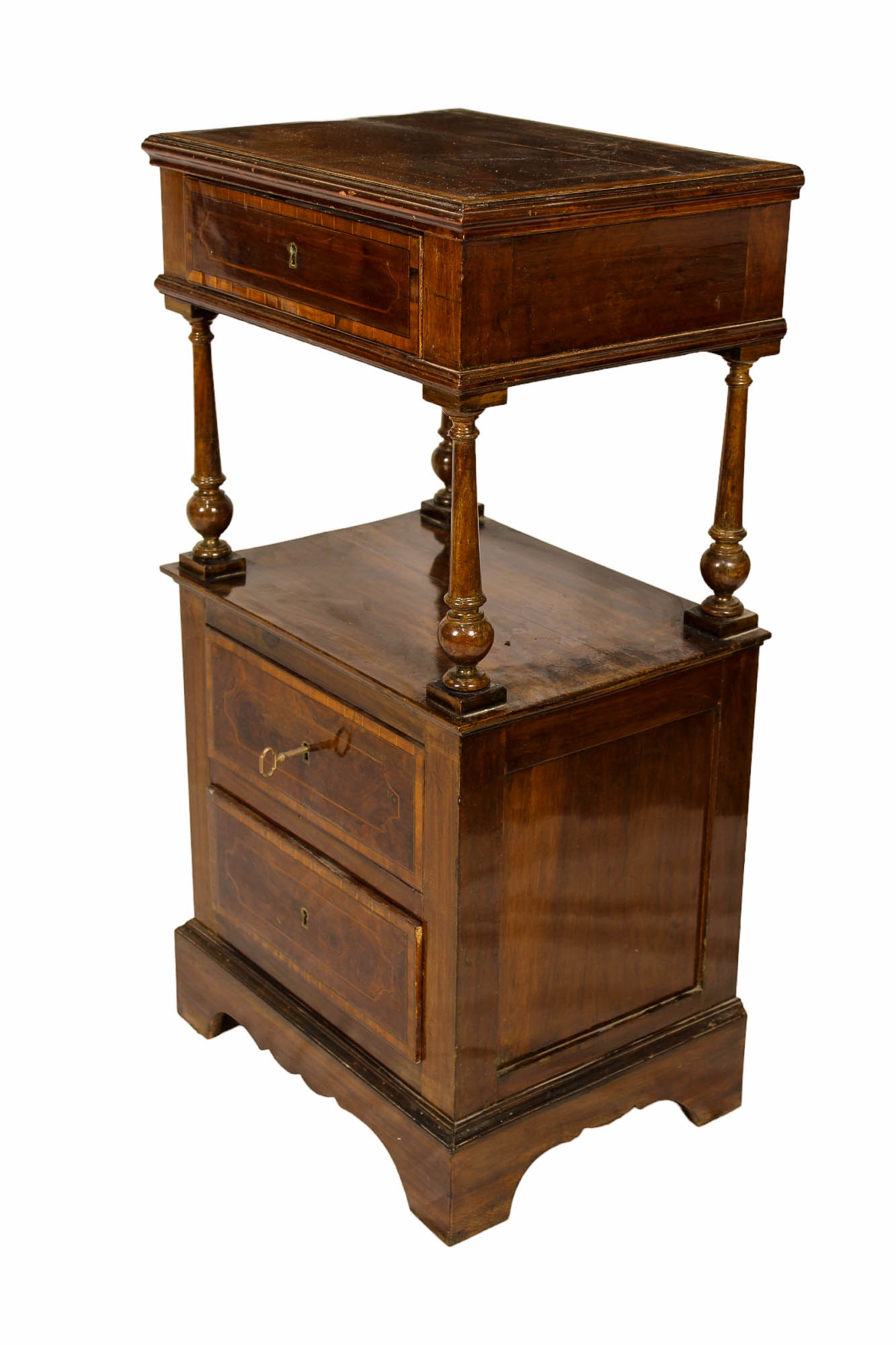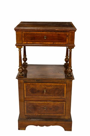 COMODINO A COLONNA in legno di noce perfilato in varie essenze di legno Sicilia XIX secolo h cm 85,5 x 44 x 33