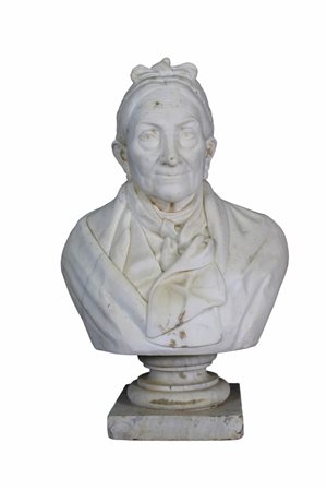 MEZZOBUSTO DI DONNA in marmo bianco di Carrara firmata e datata E. Durante 1900 h cm 71 x 45 x 25
