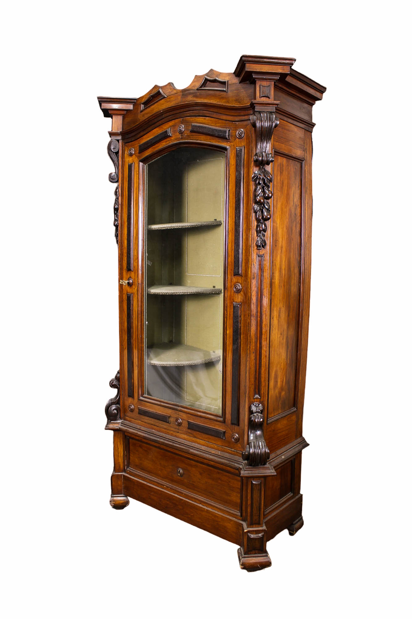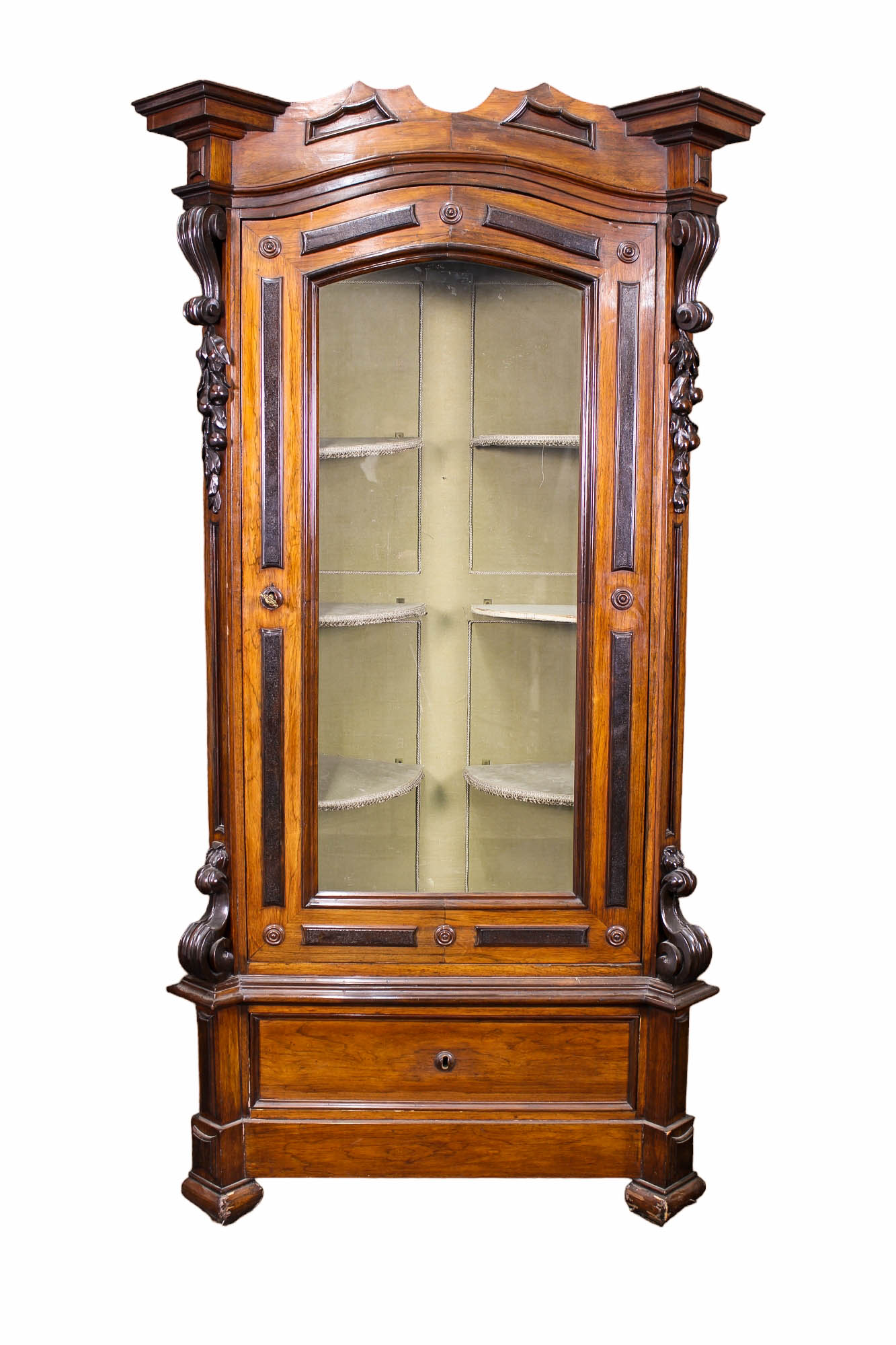VETRINA AD UN ANTA in legno di palissandro con lesene e cornici in legno scolpito ed ebanizzato Francia XIX secolo h cm 204 x 107 x 50