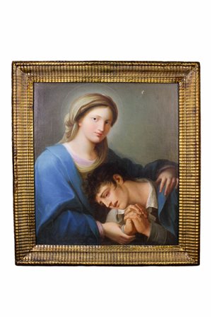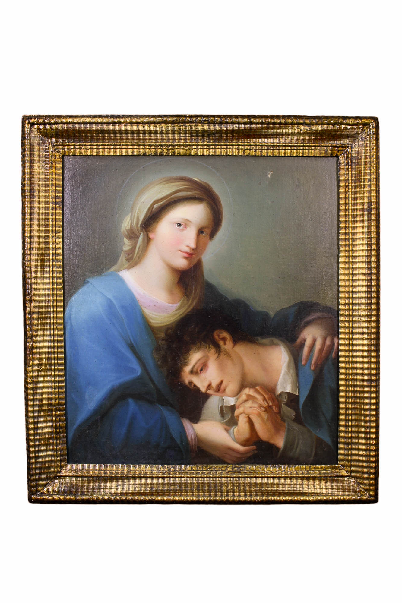 IMPORTANTE DIPINTO raffigurante madonna dei peccatori Dentro cornice coeva in legno dorata scuola francese fine XVIII primi XIX secolo h cm 77 x 71 / cornice h cm 93 x 84