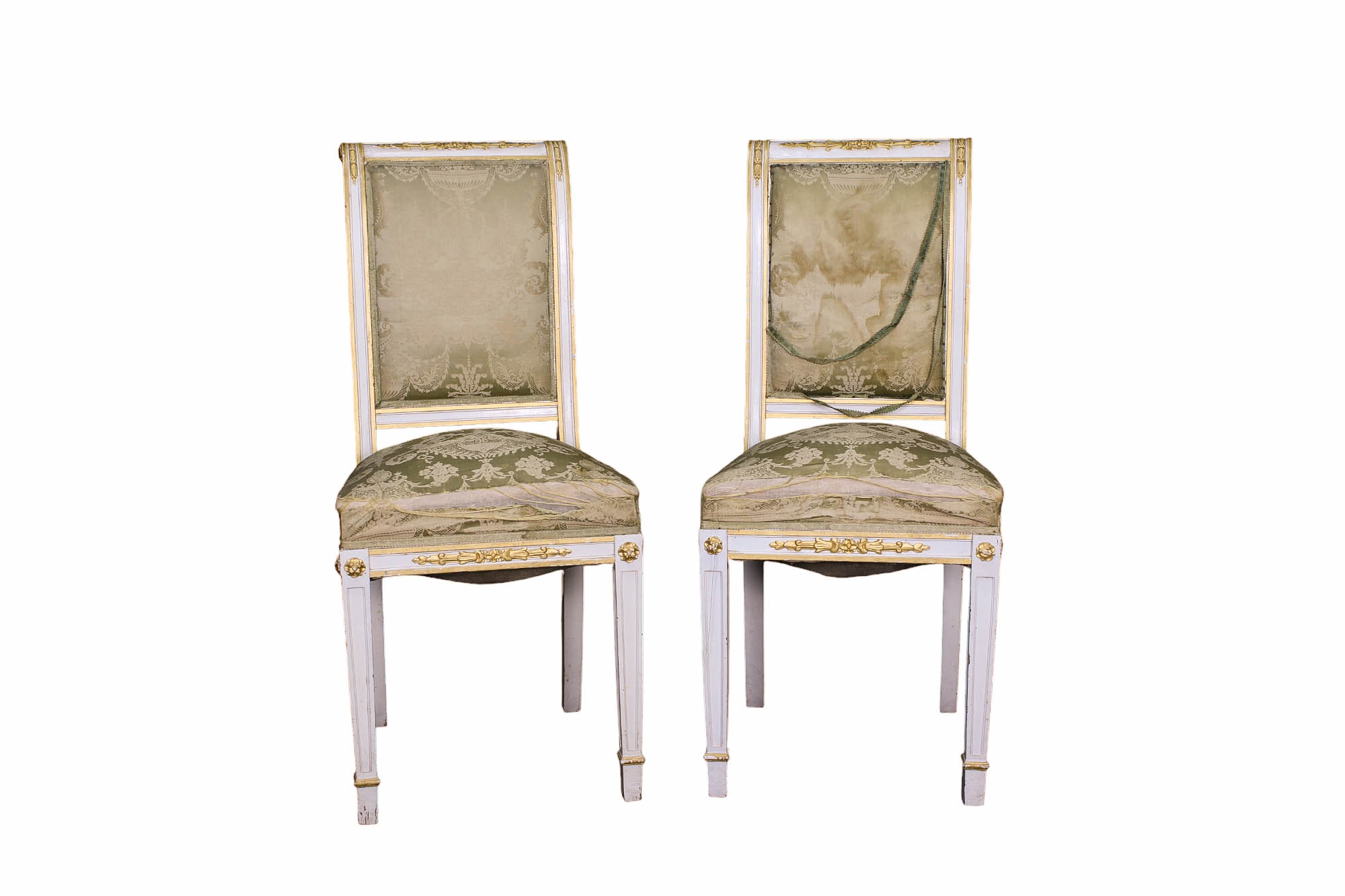 LOTTO DI 2 SEDIE DI GUSTO NEOCLASSICO in legno scolpito laccato e dorato manifattura siciliana fine XIX secolo h cm 100 x 39 x 41