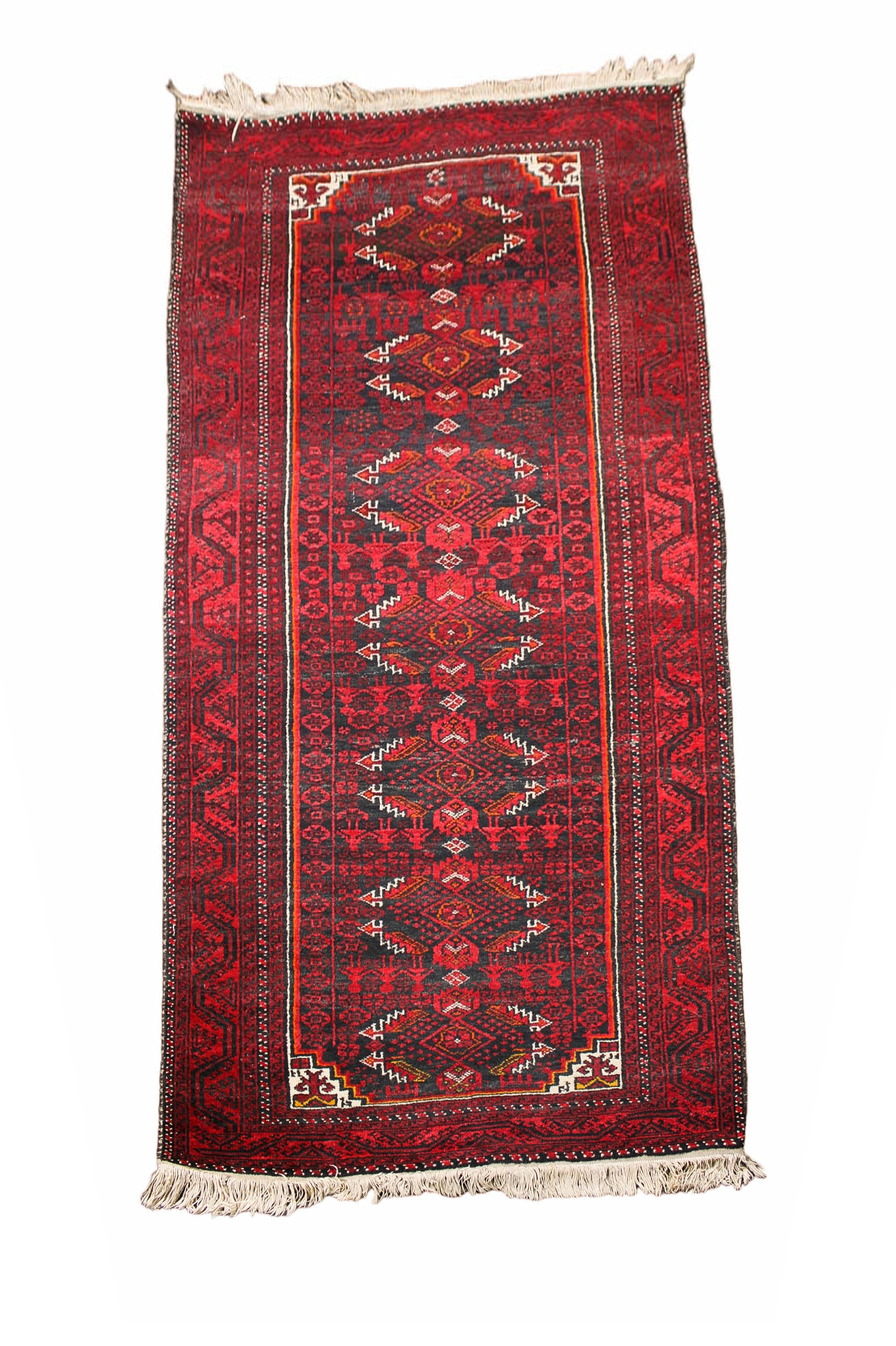 TAPPETO AFGANO vello in lana annodato a mano a fondo rosso XX secolo cm 192 x 96