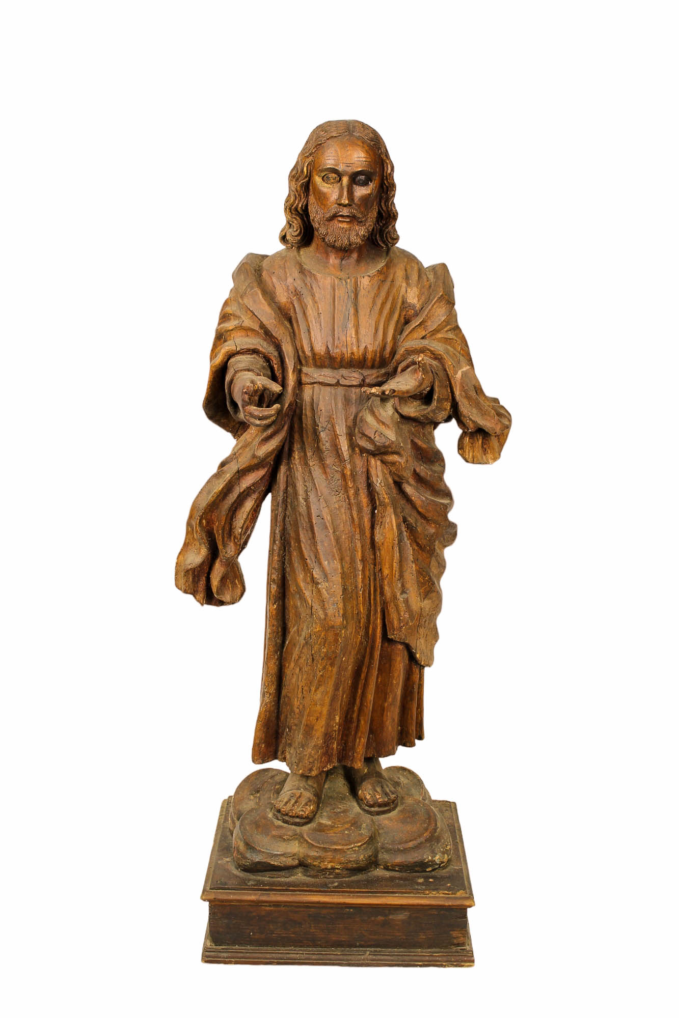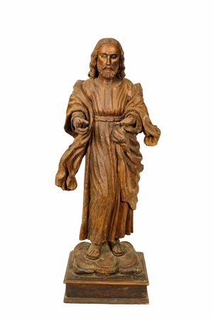 IMPORTANTE SCULTURA raffigurante Gesù in legno di noce finemente scolpito maestranze Siciliane XVIII secolo h cm 130 x 56 x 33,5
