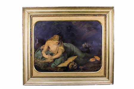 CORNICE in legno dorato contenente stampa colorata raffigurante Santa Rosalia Sicilia h cm 95 x 110