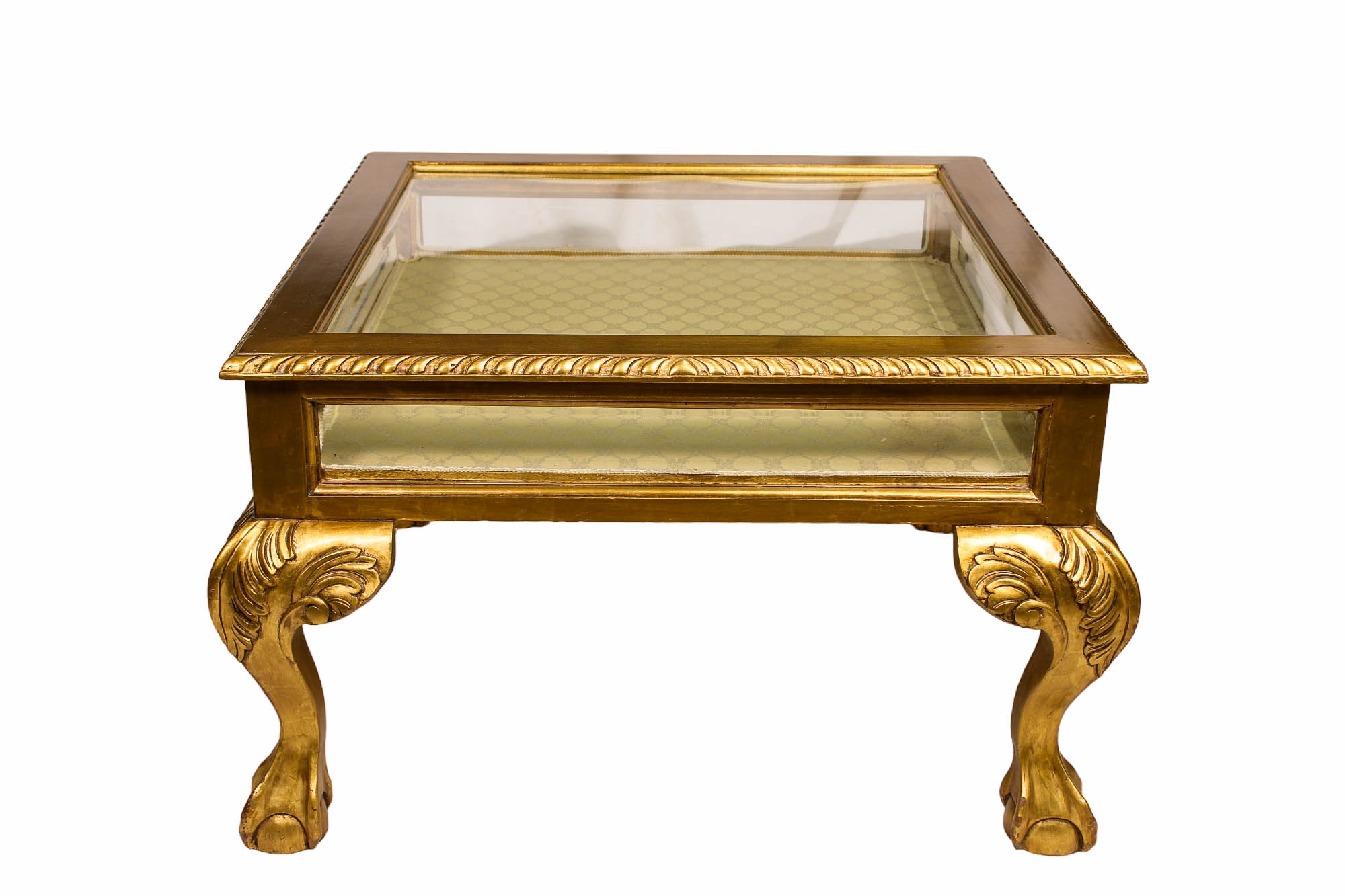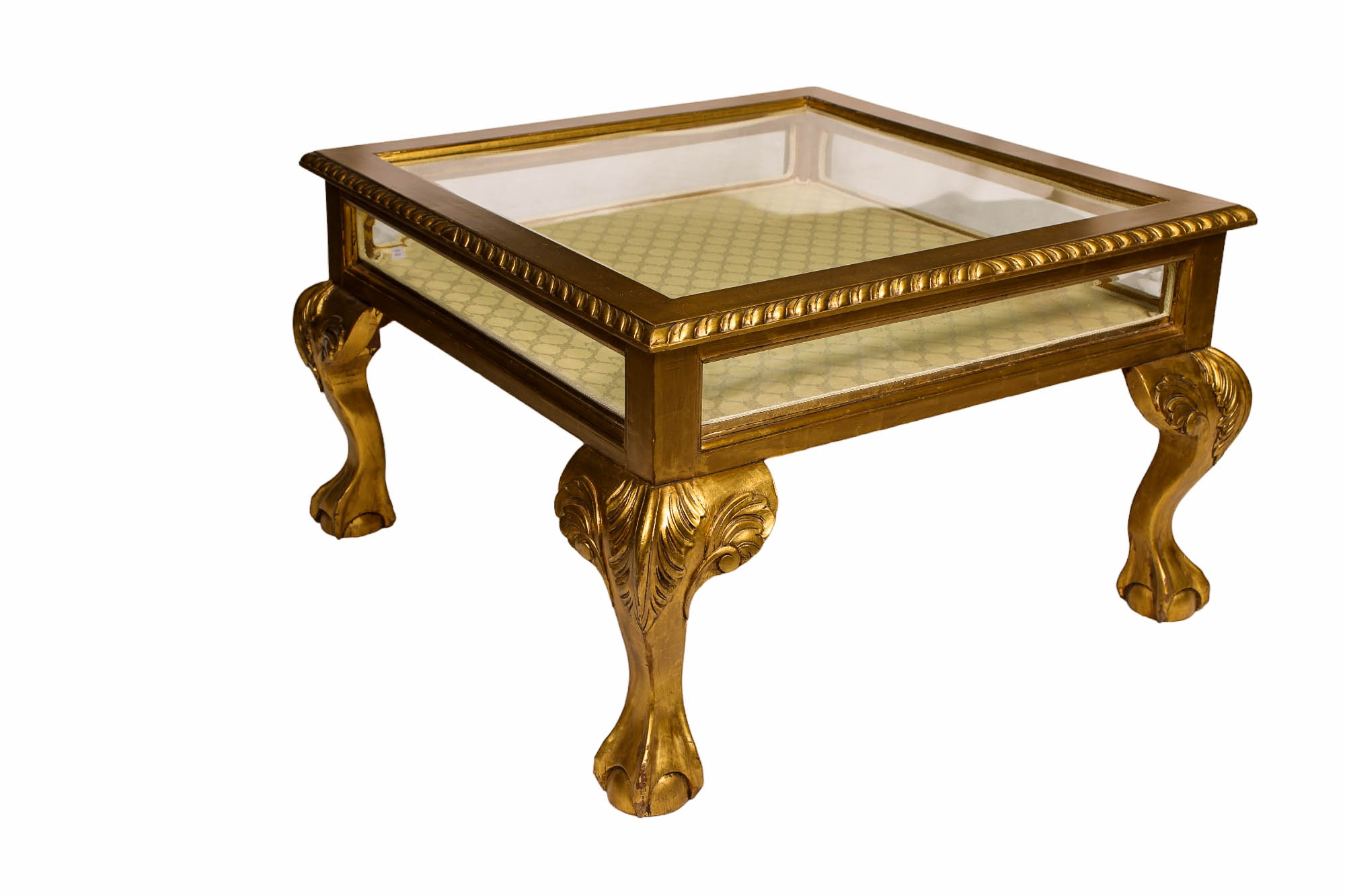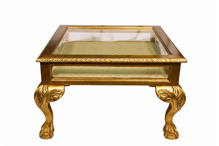 TAVOLO BACHECA in legno dorato e intagliato Sicilia XX secolo h cm 51 x 84 x 84