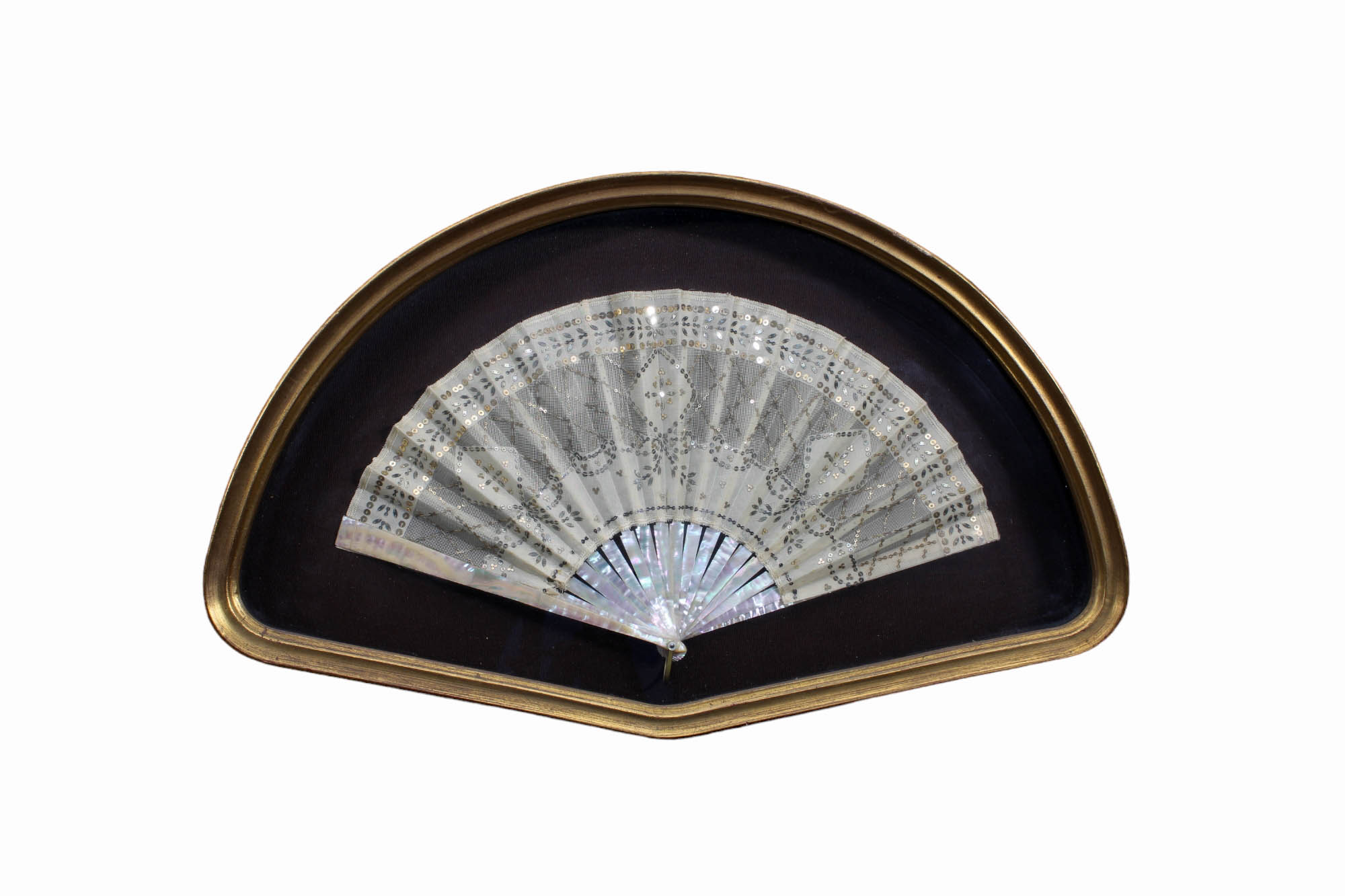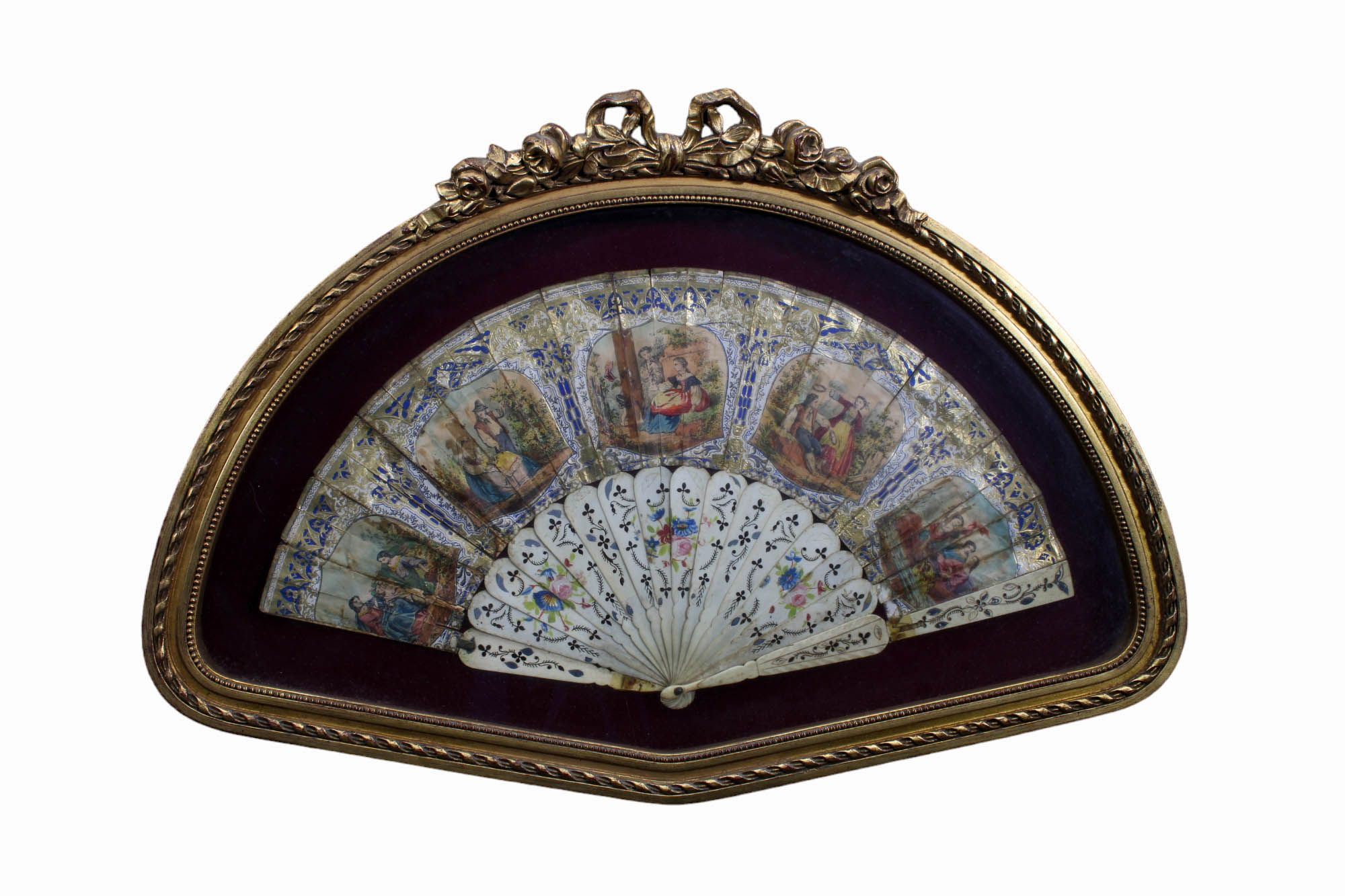 DUE VENTAGLI dentro teca in legno dorato Francia XIX secolo h cm 42,5 x 63 / teche h cm 33 x 53