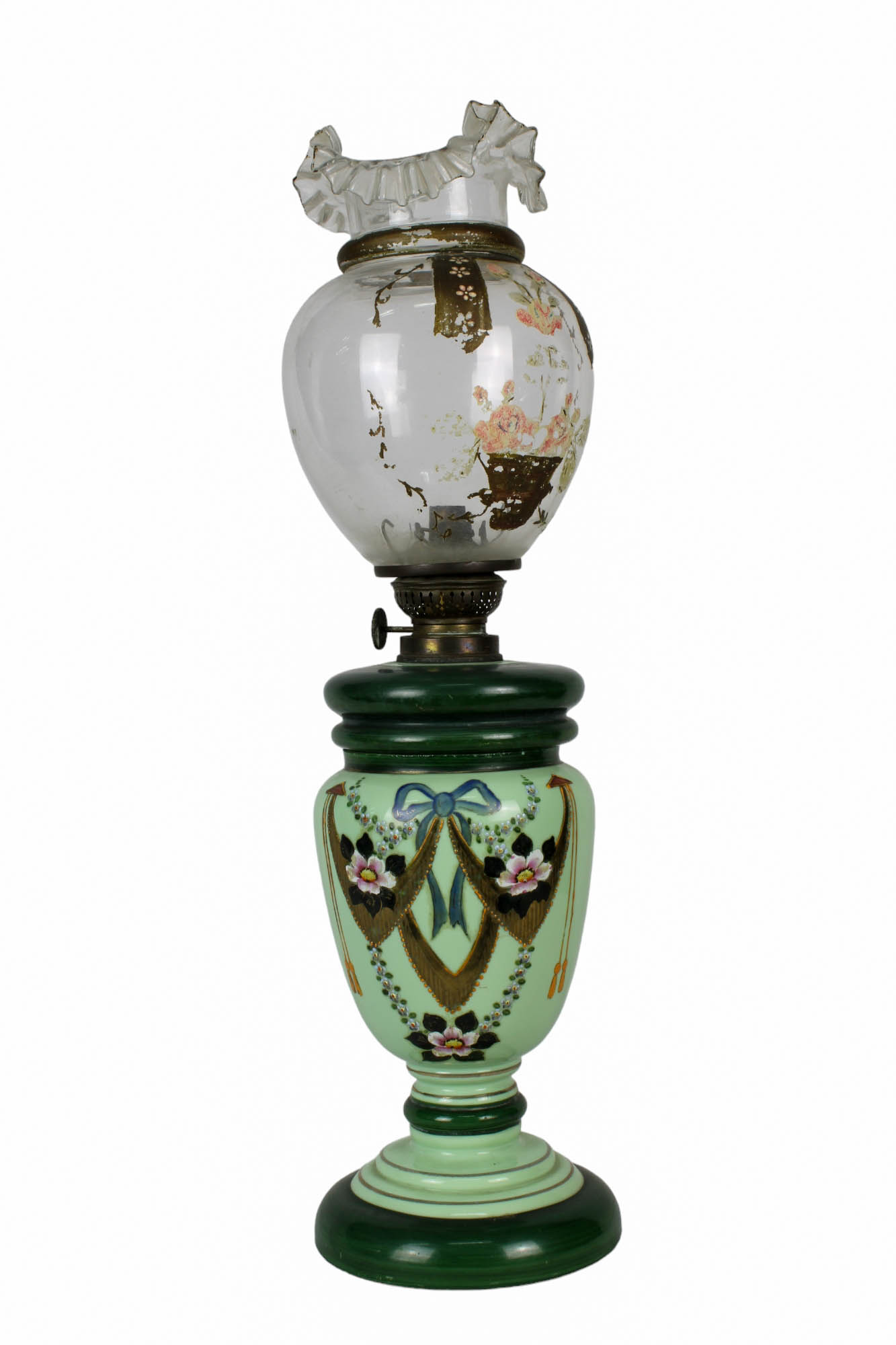 LUME in opaline dipinta con boccia in vetro dipinto a motivi floreali Sicilia fine 800