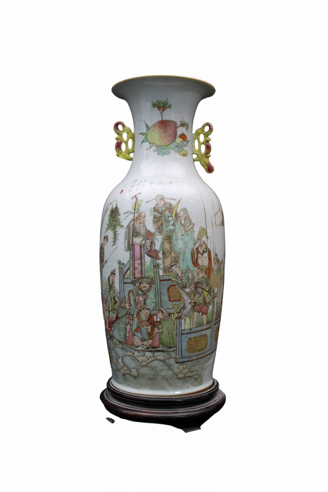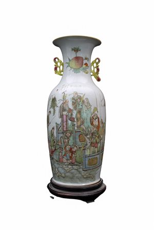 VASO in porcellana dipinto da scene Orientali con personaggi manifattura Cina XIX secolo h cm 65 x 25