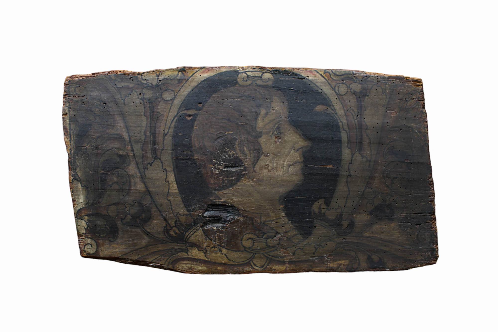 TEMPERA SU TAVOLA di legno di castagno raffigurante figura di condottiero probabilmente Francesco Scorza scuola Lombarda fine XV primi XVI secolo h cm 27 x 48