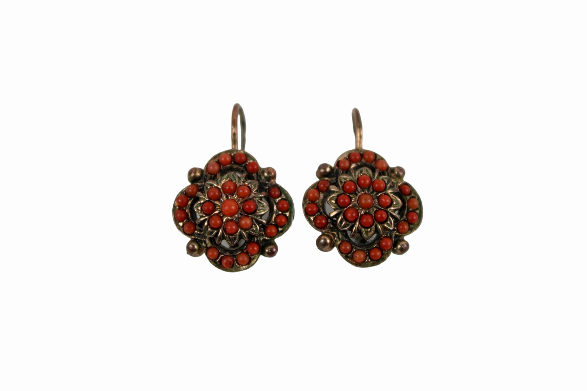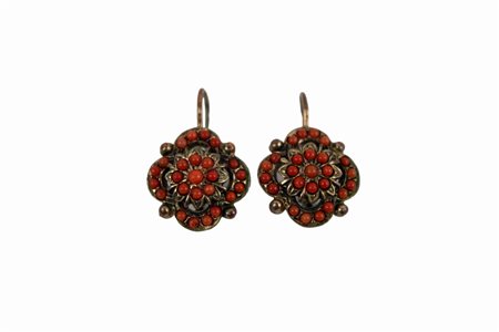 ORECCHINI con perline di corallo con montatura in argento maestranze siciliane fine XIX secolo