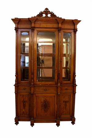 MOBILE VETRINA in legno di castagno parte inferiore a 3 sportelli e 3 cassetti parte superiore a 3 ante a vetri Sicilia XIX secolo h cm 276 x 150 x 55
