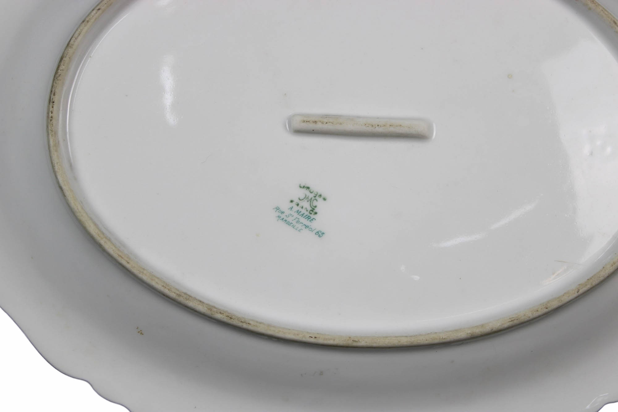 ZUPPIERA CON VASSOIO in porcellana dipinta e lumeggiature in oro manifattura Limoges primi 900 misure varie