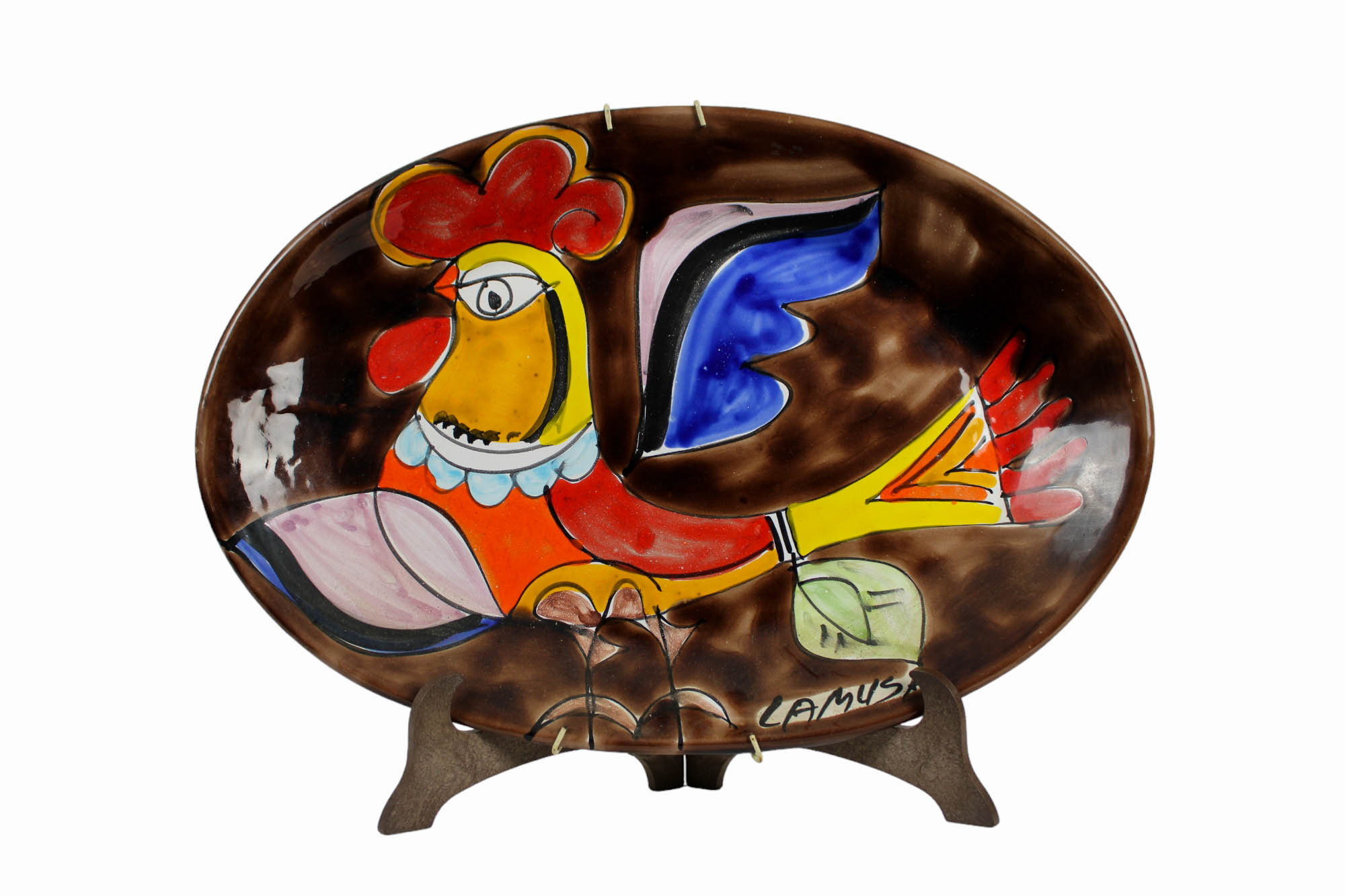 LOTTO DI 3 PIATTI DA PORTATA in maiolica dipinta di cui 1 firmato la Musa Sicilia XX Sec misure varie