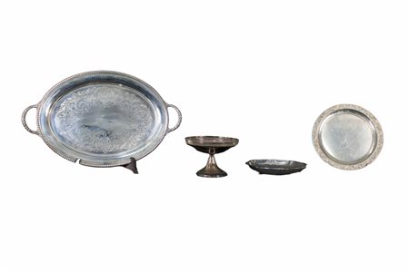 LOTTO COMPOSTO DA 1 vassoio finemente cesellato 1 alzata 1 piattino e 1 piatto in Sheffield Inghilterra primi 900 misure varie