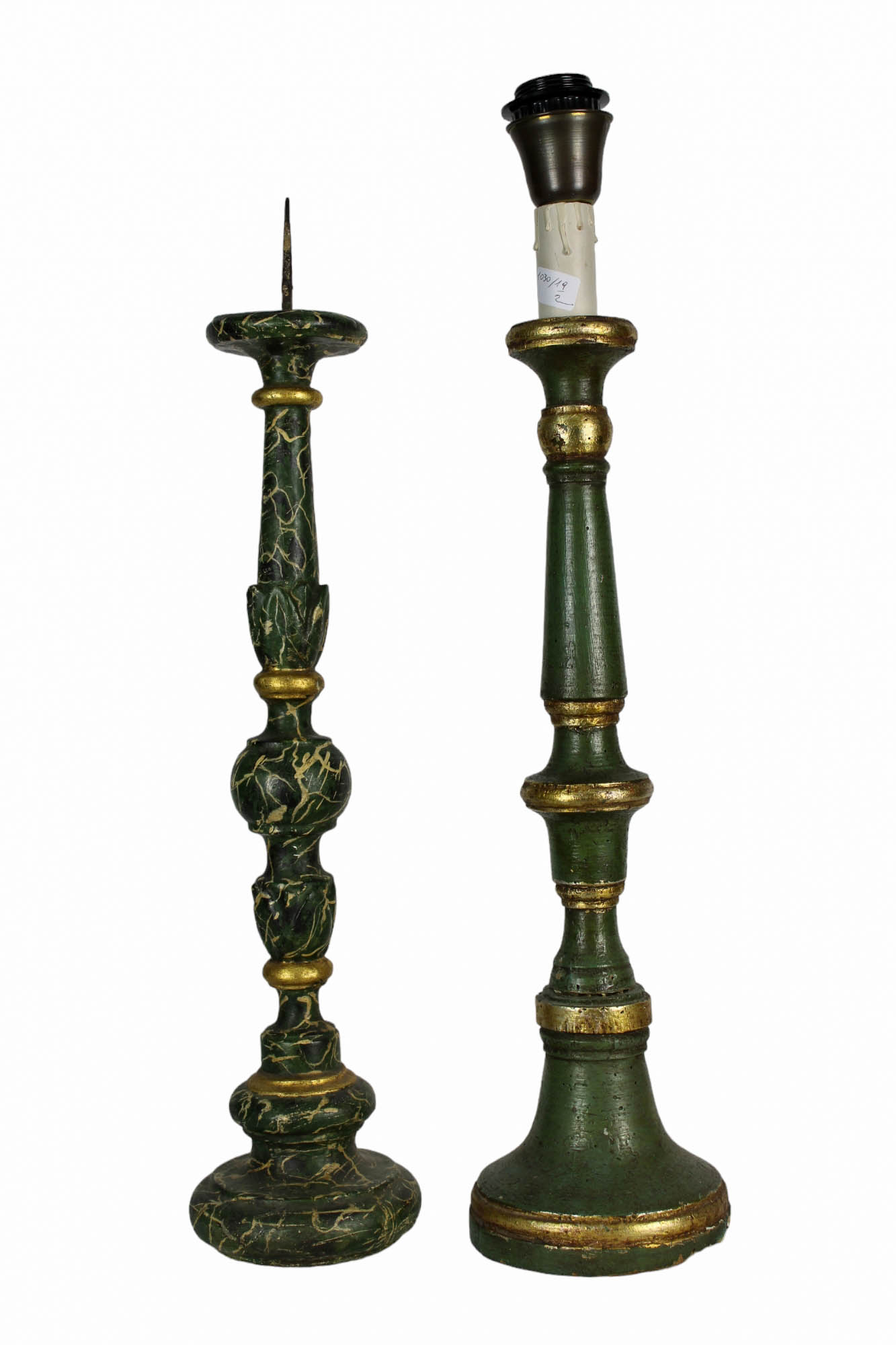 DUE TORCERI in legno laccato e dorato di cui uno a finto marmo Sicilia XVIII secolo h cm 40