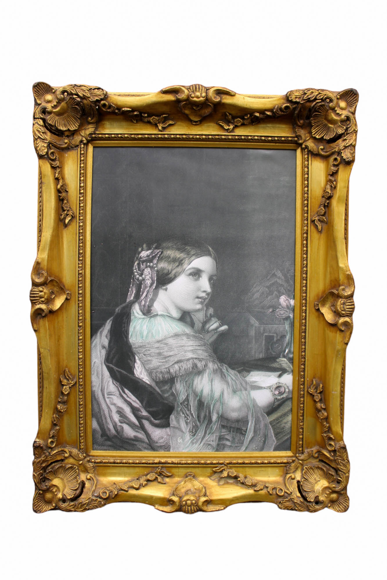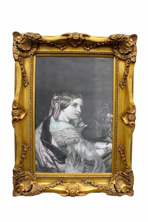 CORNICE in legno e pastiglia dorata contenente stampa,usure del tempo e incollaggi Francia XX secolo h cm 90 x 59 / cornice h cm 123 x 91
