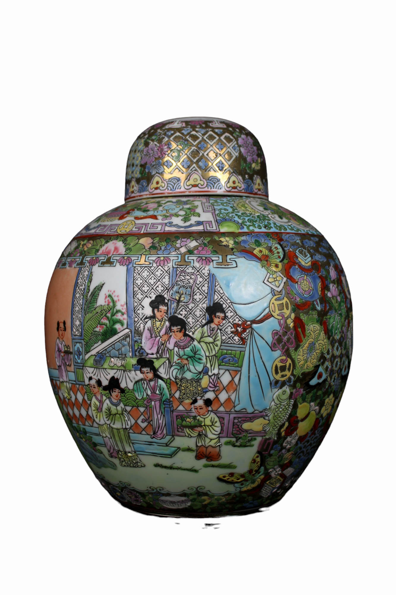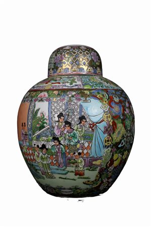LOTTO COMPOSTO DA una potiche e una grande ciotola dipinti con lumeggiature in oro manifattura orientale XX secolo h cm 36 x 26 / Ø 22