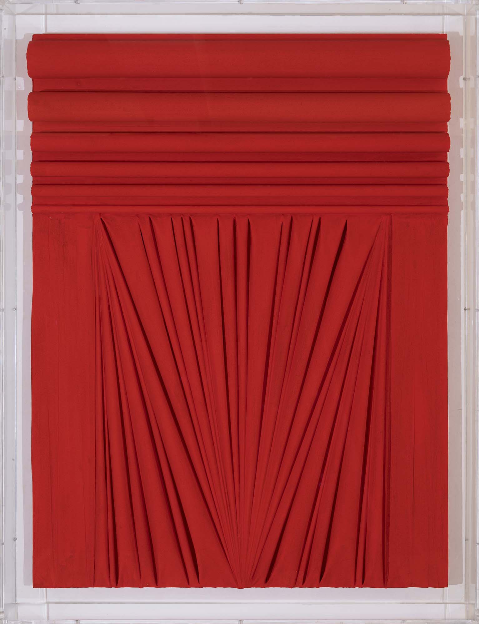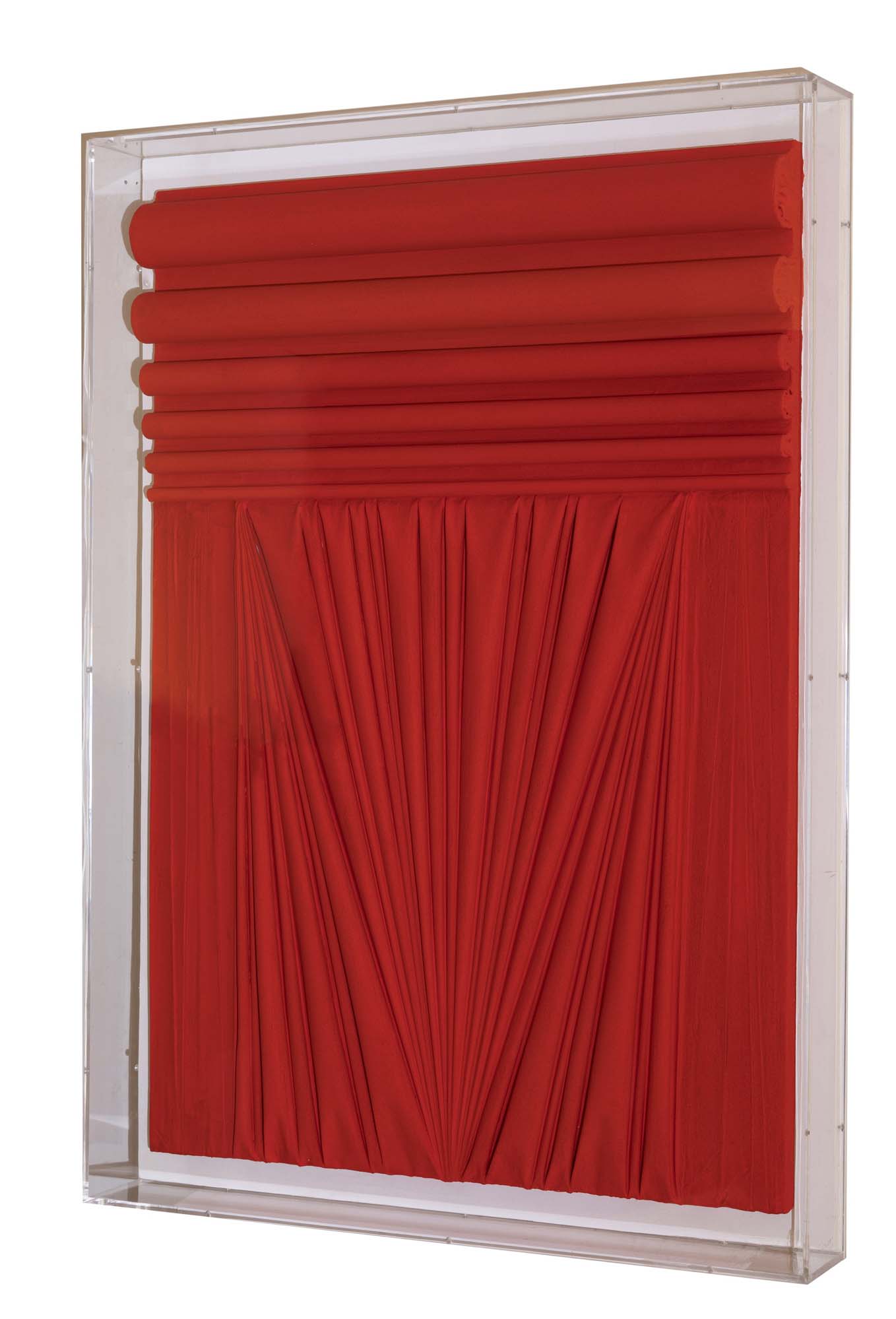 vinilico e sabbia su lamina di piombo entro teca cm. 120,5x90x12