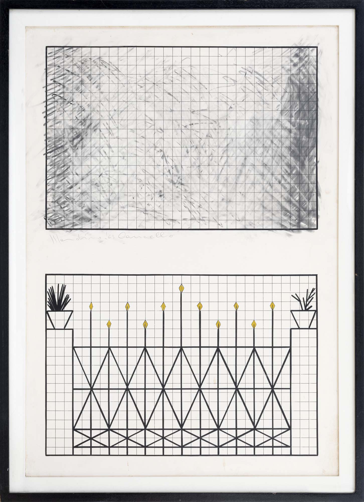 ALDO MONDINO (Torino, 1938 - 2005) Cancello 1963 tecnica mista su cartoncino...