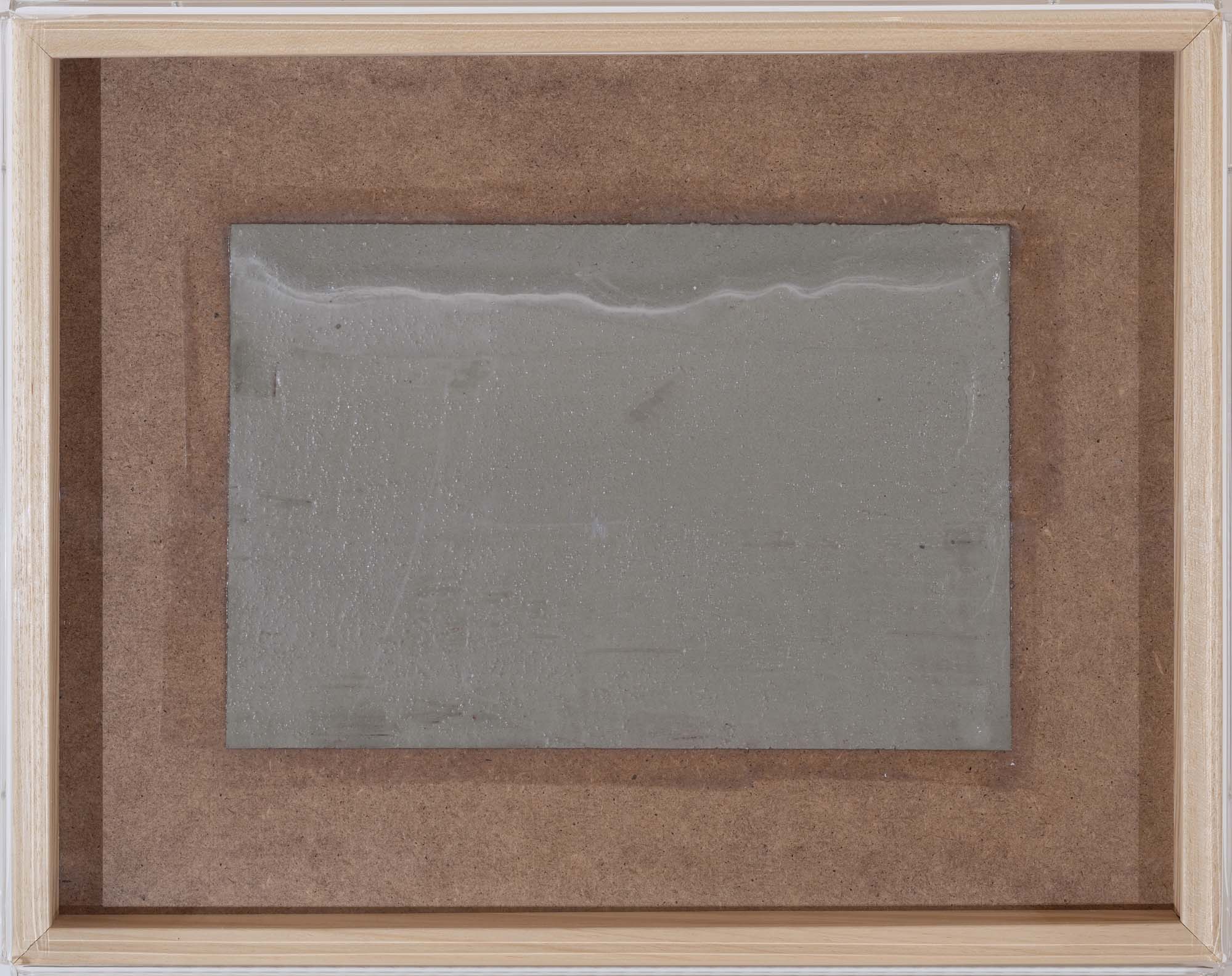 cemento su faesite entro teca in plexiglass cm. 34,5x44