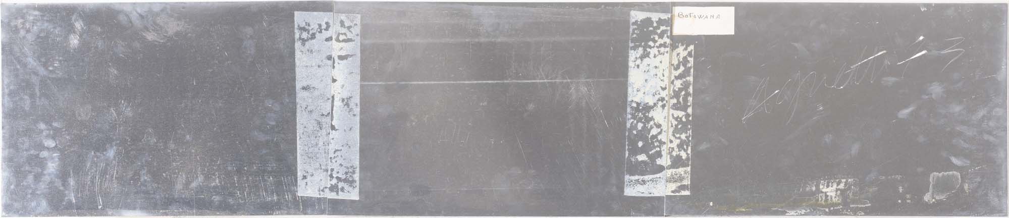 stampa fotografica, scrittura e testo dattiloscritto su alluminio cm. 30x120