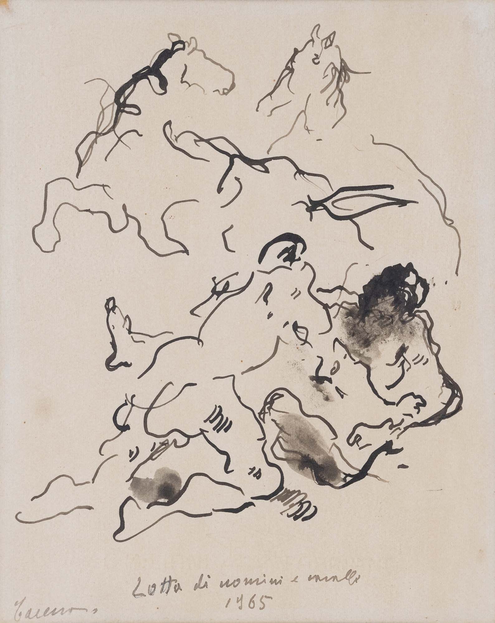 FELICE CARENA (Cumiana (To), 1879 - Venezia , 1966) Lotta di uomini e cavalli...