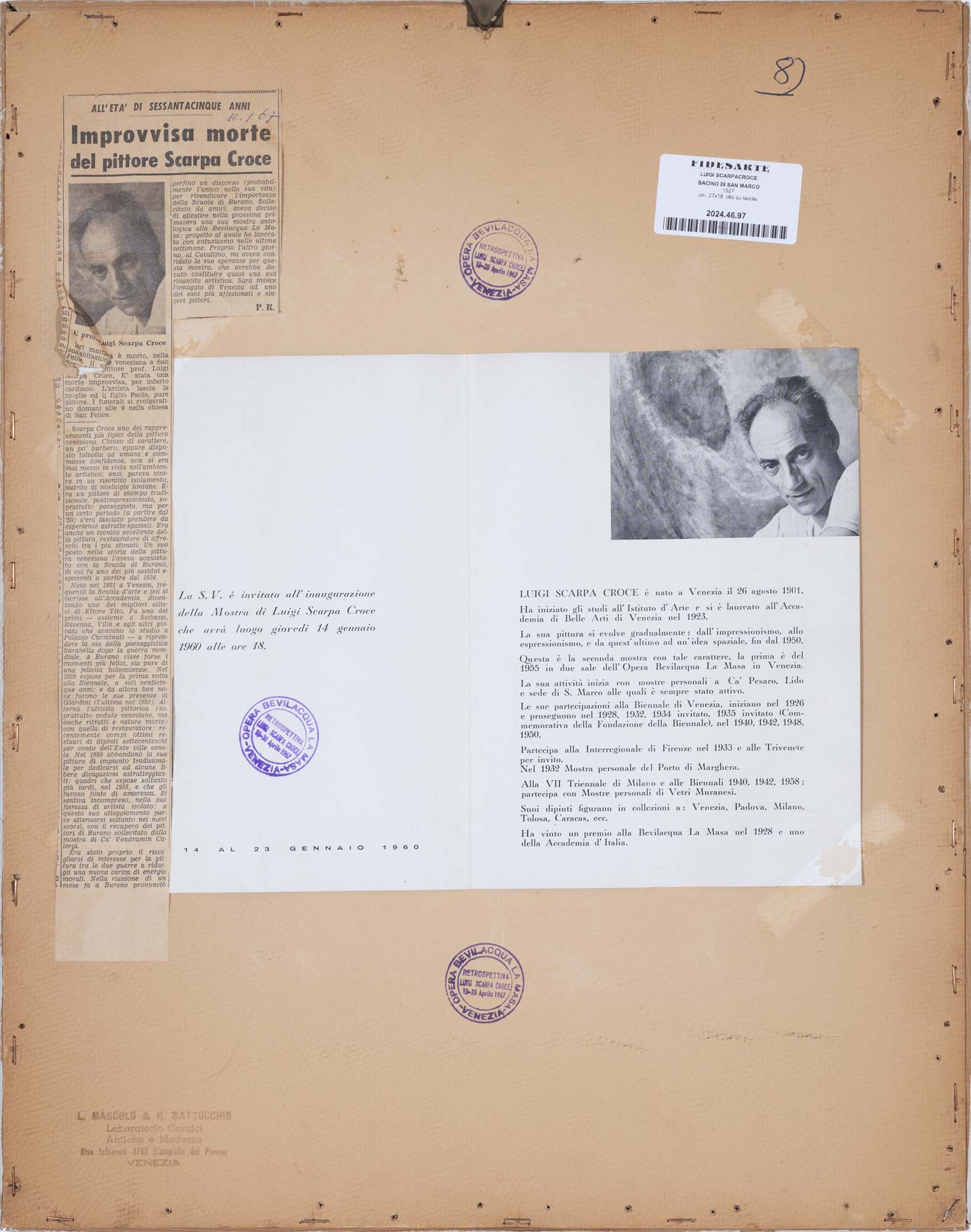 Venezia, "Retrospettiva Luigi Scarpacroce 15-28 aprile 1967" Opera Bevilacqua La Masa - timbri al retro