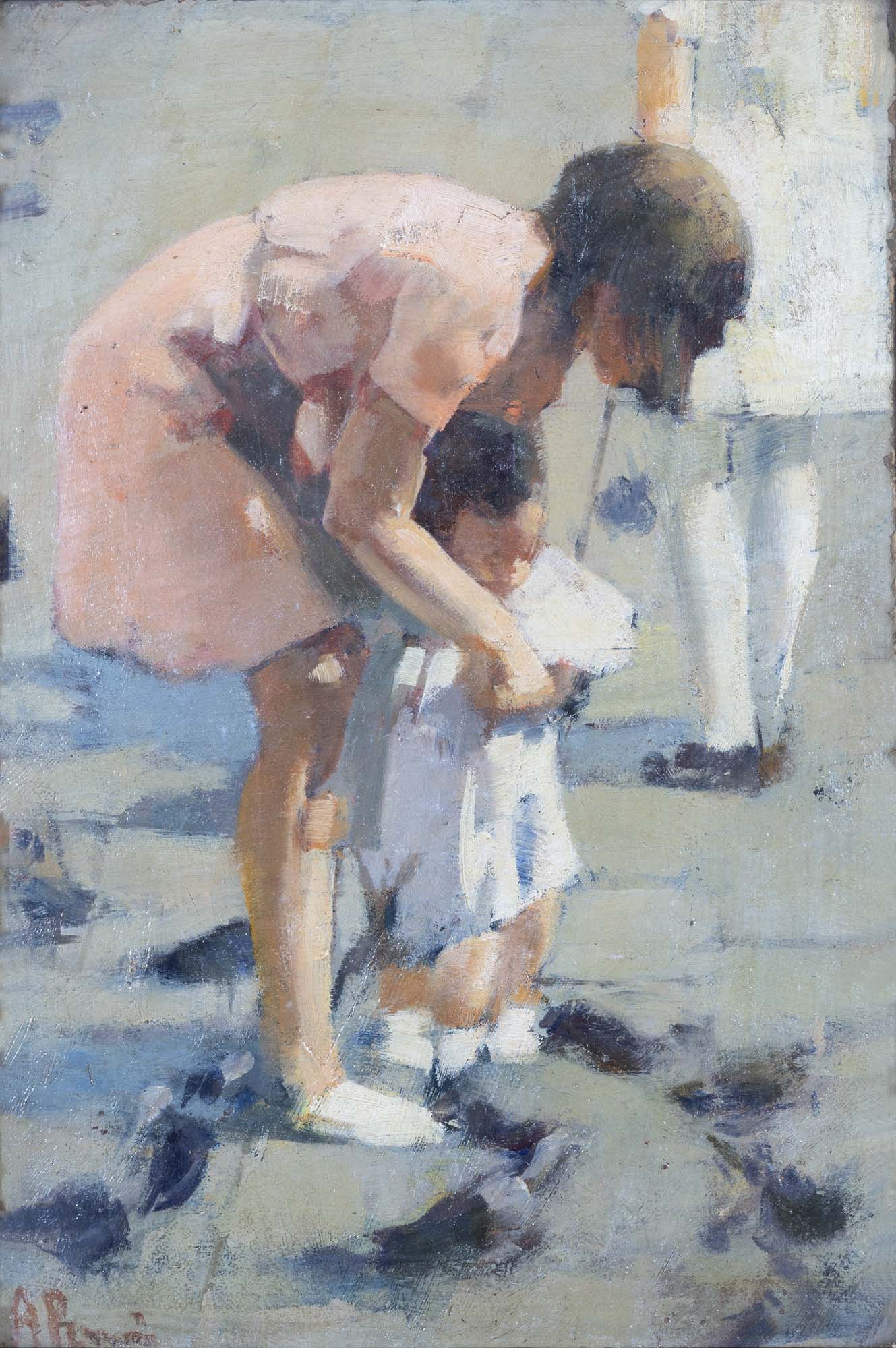 ALESSANDRO POMI (Mestre 1890 - Venezia 1976, - ) Pasto ai piccioni olio su...