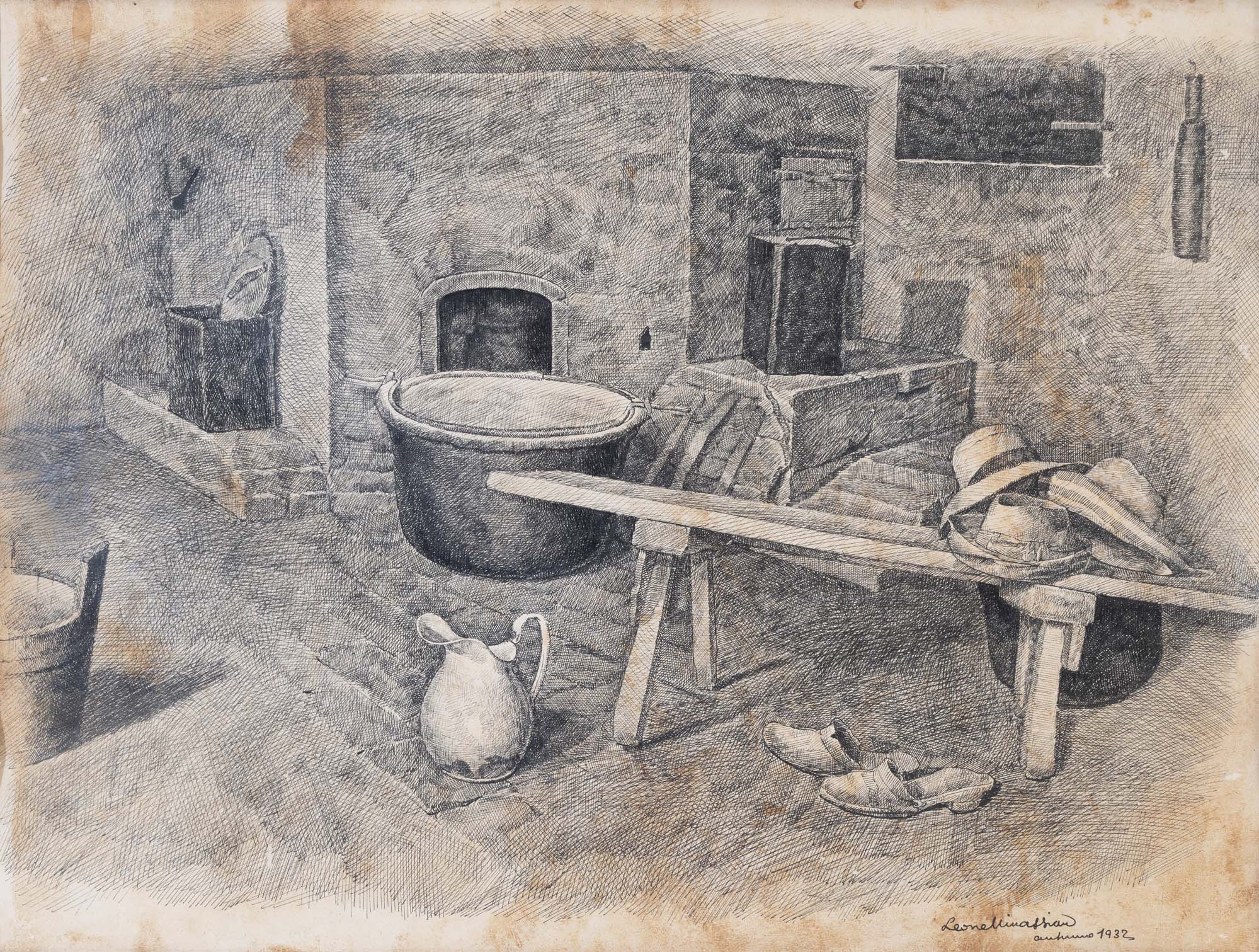 LEONE MINASSIAN (Costantinopoli, 1905 - Venezia, 1978) Interno 1932 disegno a...