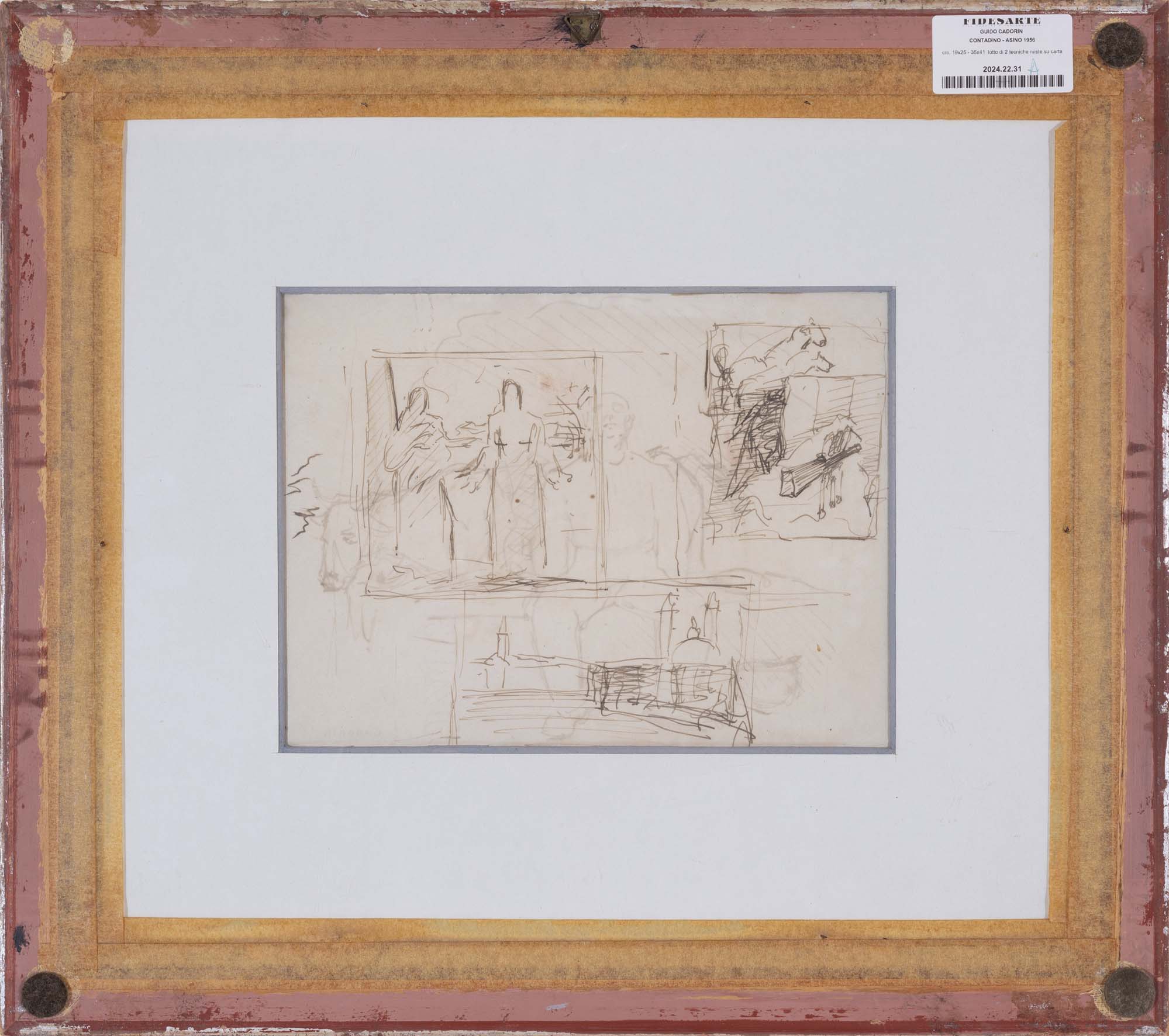lotto di 2 tecniche miste su carta cm. 19x25 - 35x41