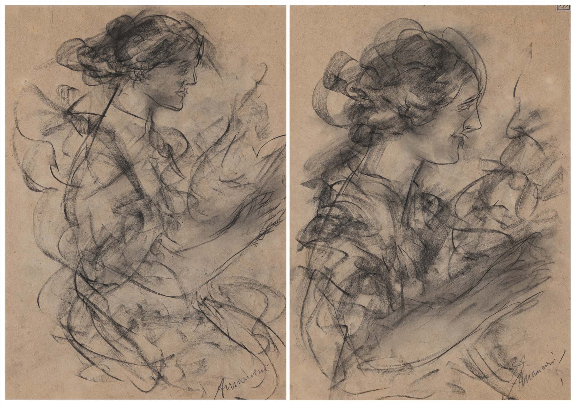 ANTONIO MANCINI (Albano laziale, 1852 - Roma, 1930) Figura (recto/verso)...