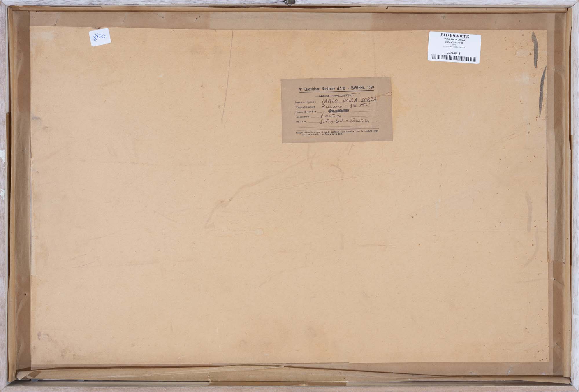 Ravenna, V° Esposizione Nazionale d'Arte 1949 - etichetta al retro