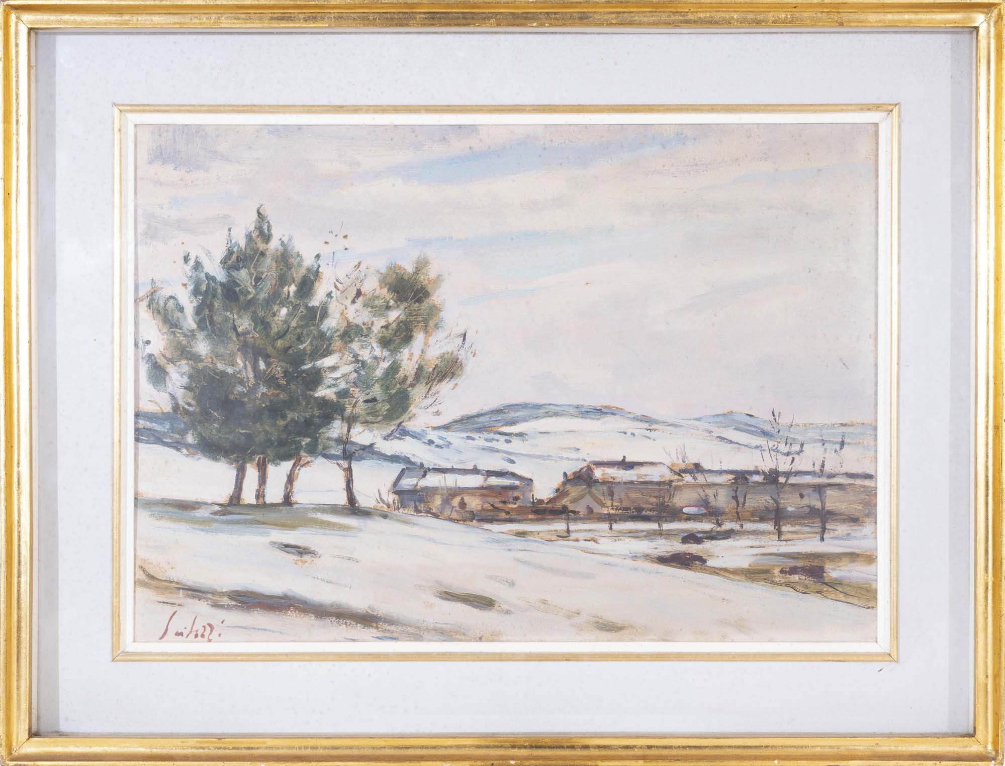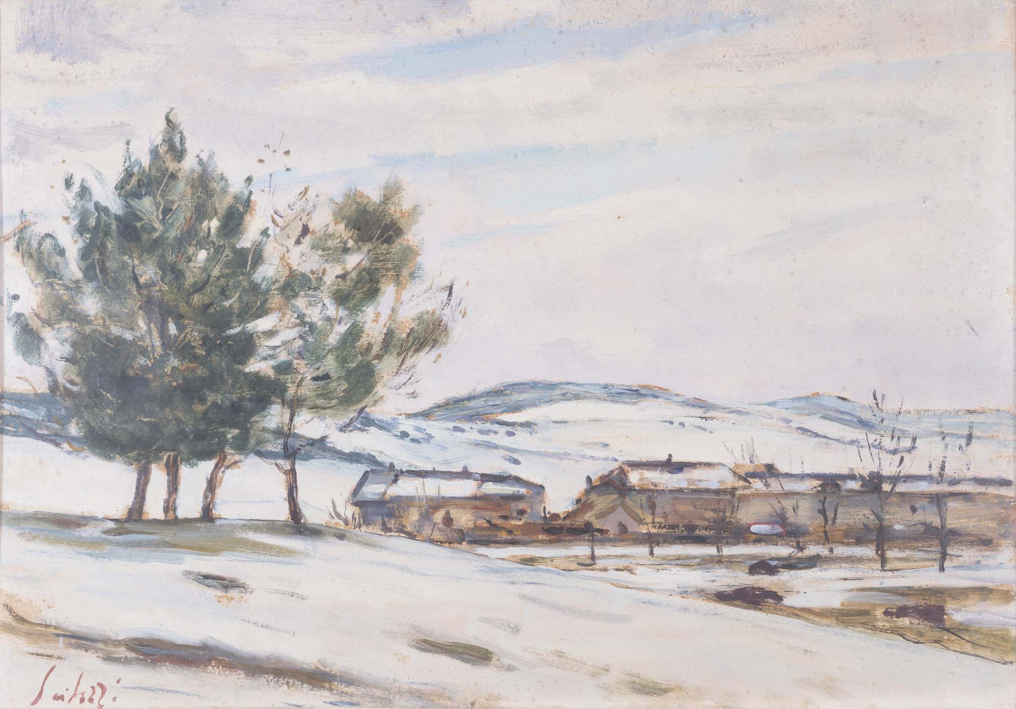 FIORAVANTE SEIBEZZI (Venezia, 1906 - 1975) Paesaggio innevato olio su cartone...