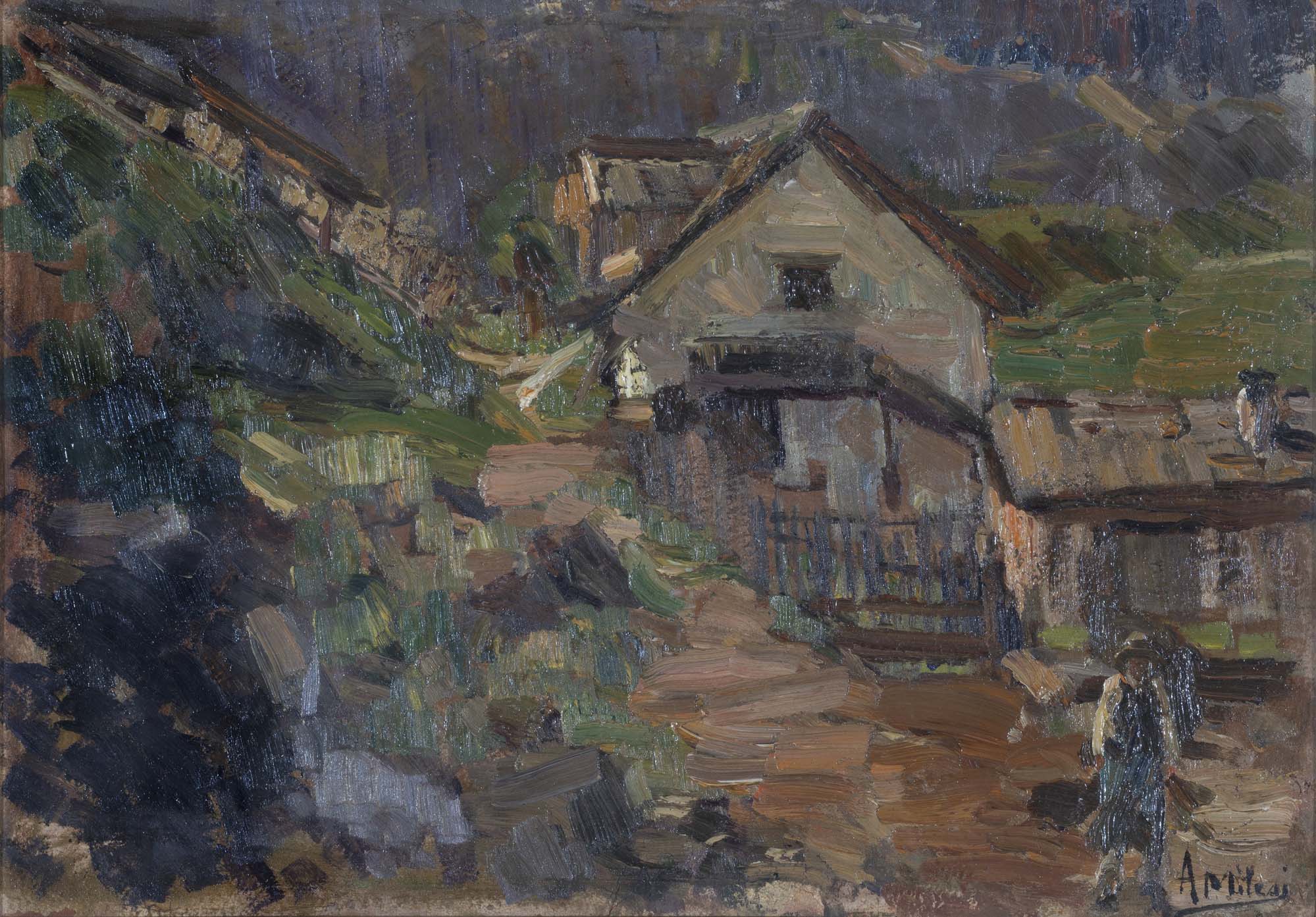 ALESSANDRO MILESI (Venezia, 1856 - 1945) Cavalese 1922 olio su cartone cm....
