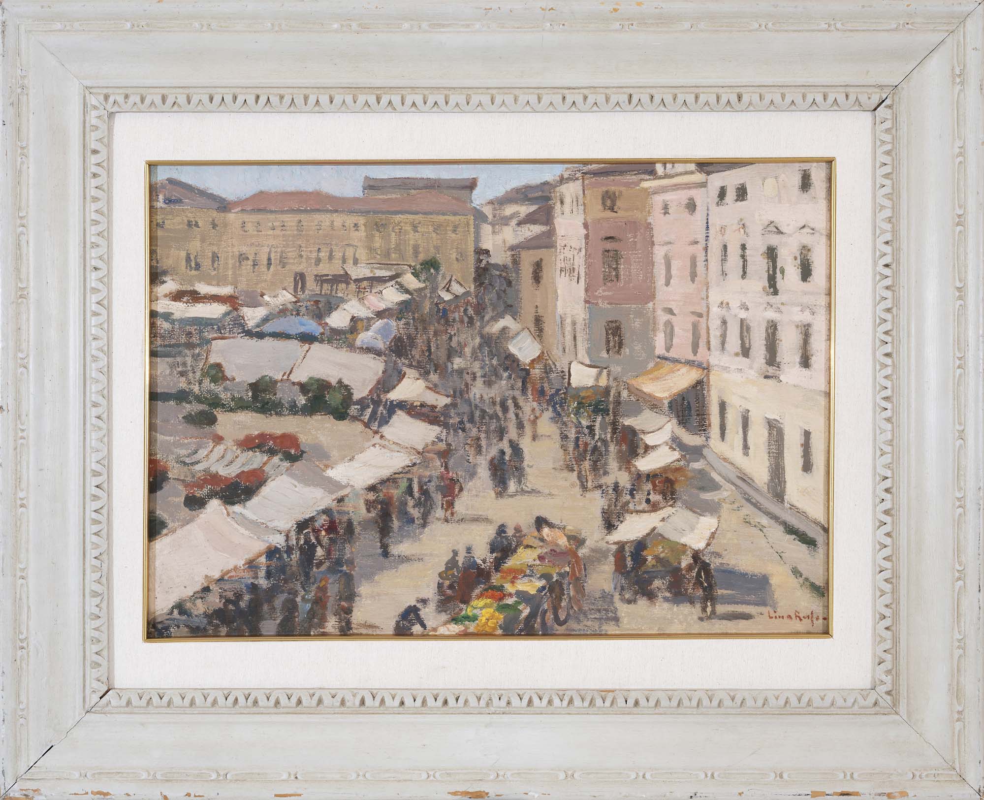 LINA ROSSO (Venezia 1888 - 1975, - ) Mercato a Pieve di Soligo 1946 olio su...