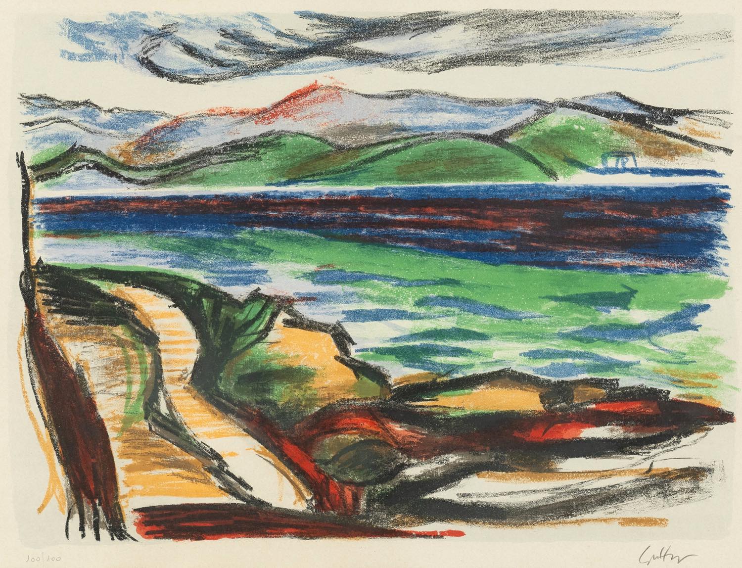 Renato Guttuso (Bagheria 1911 - Roma 1987), “Paesaggio”. Litografia su carta, firmata in basso a destra, numero di tiratura in basso a sinistra 100/100, Foglio H cm 54x69.5