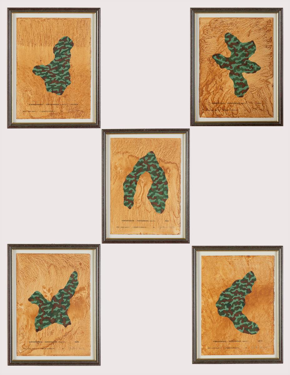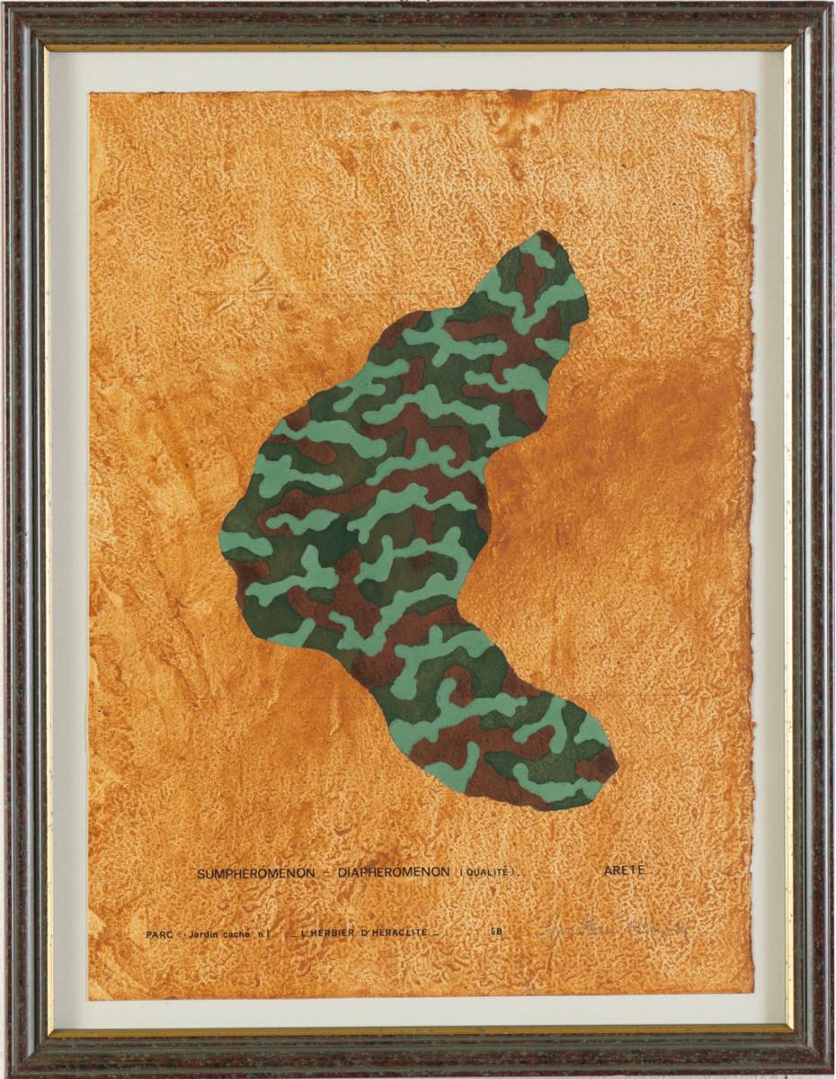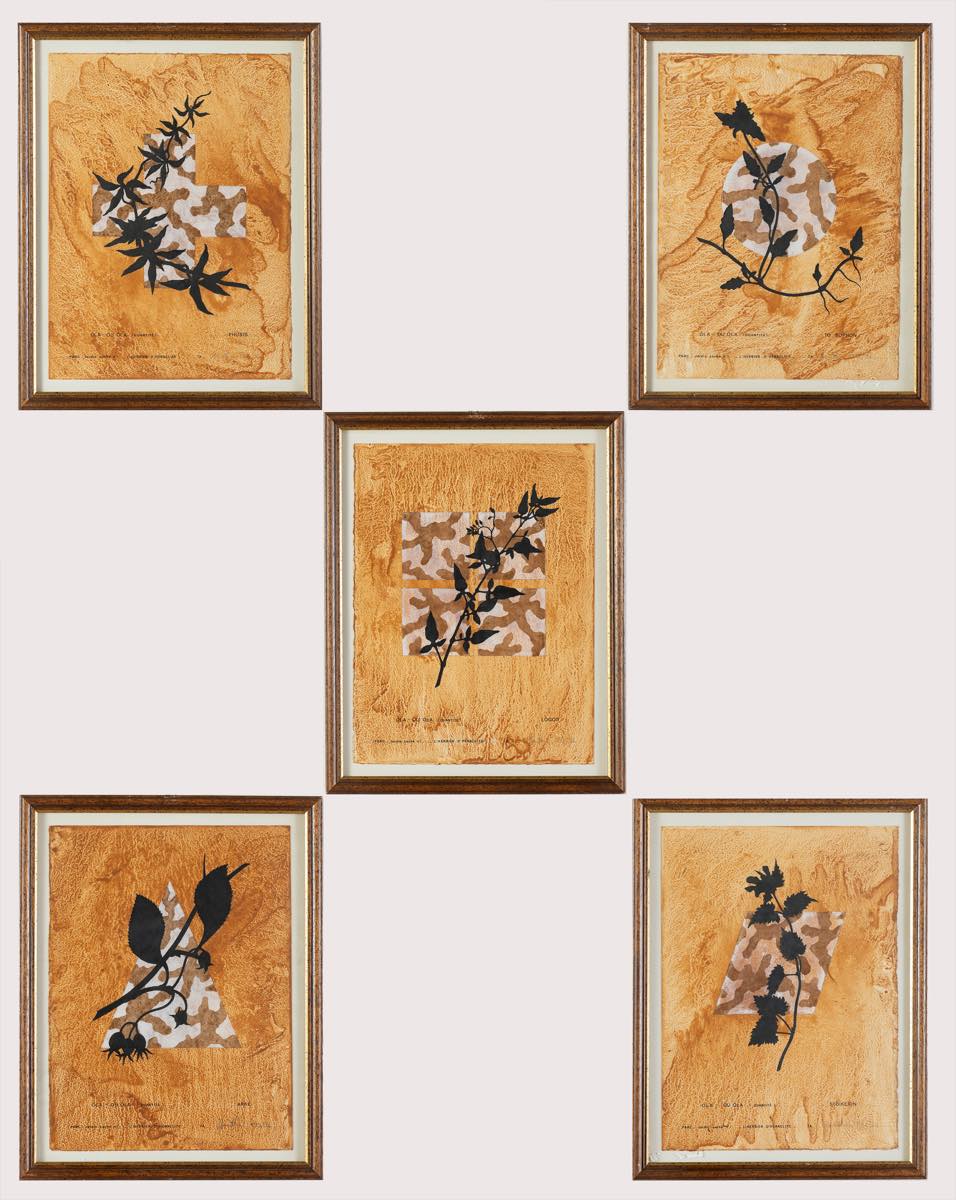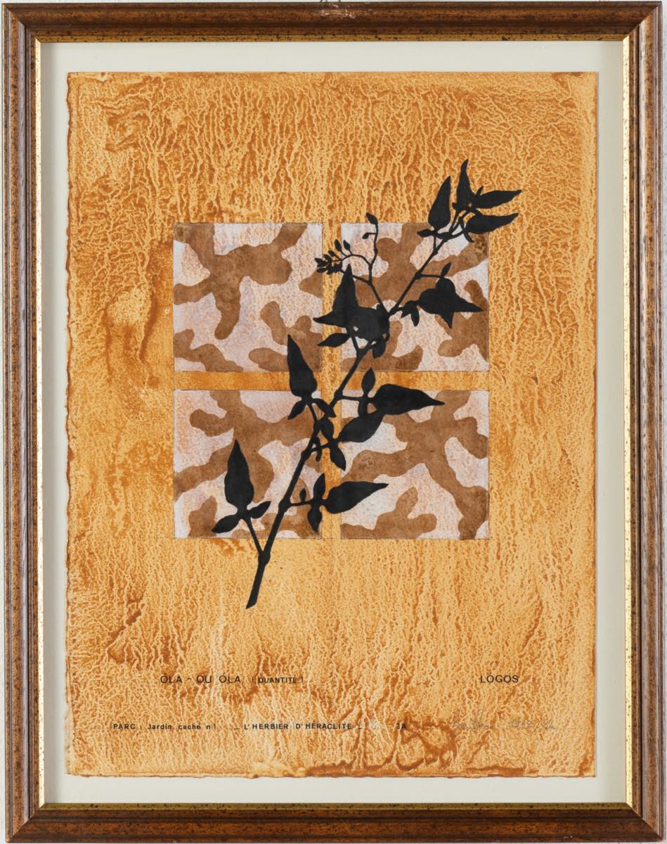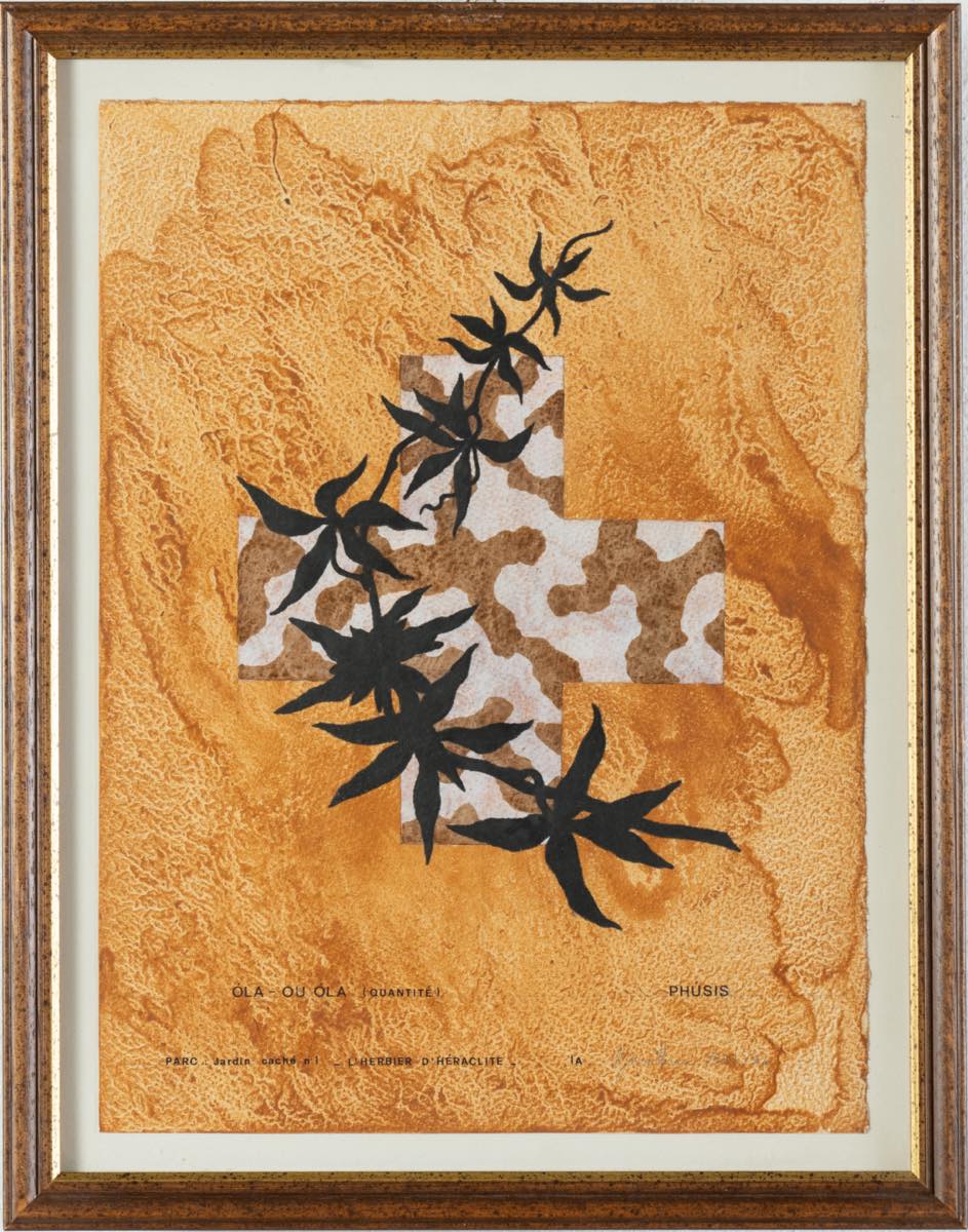 Gianni Burattoni (Russi 1947), “L’Herbier d’Héraclite”, 1993/1994. Lotto composto da 16 tecniche miste su carta firmate e datate in basso a destra, recano in basso al centro iscrizione “PARC: Jardin cache n 1”, titolo della serie e titolo dell’opera, l’opera capofila della serie reca al retro timbro della Galerie Polaris – Parigi, H cm 38x27 Provenienza: Galerie Polaris – Parigi.