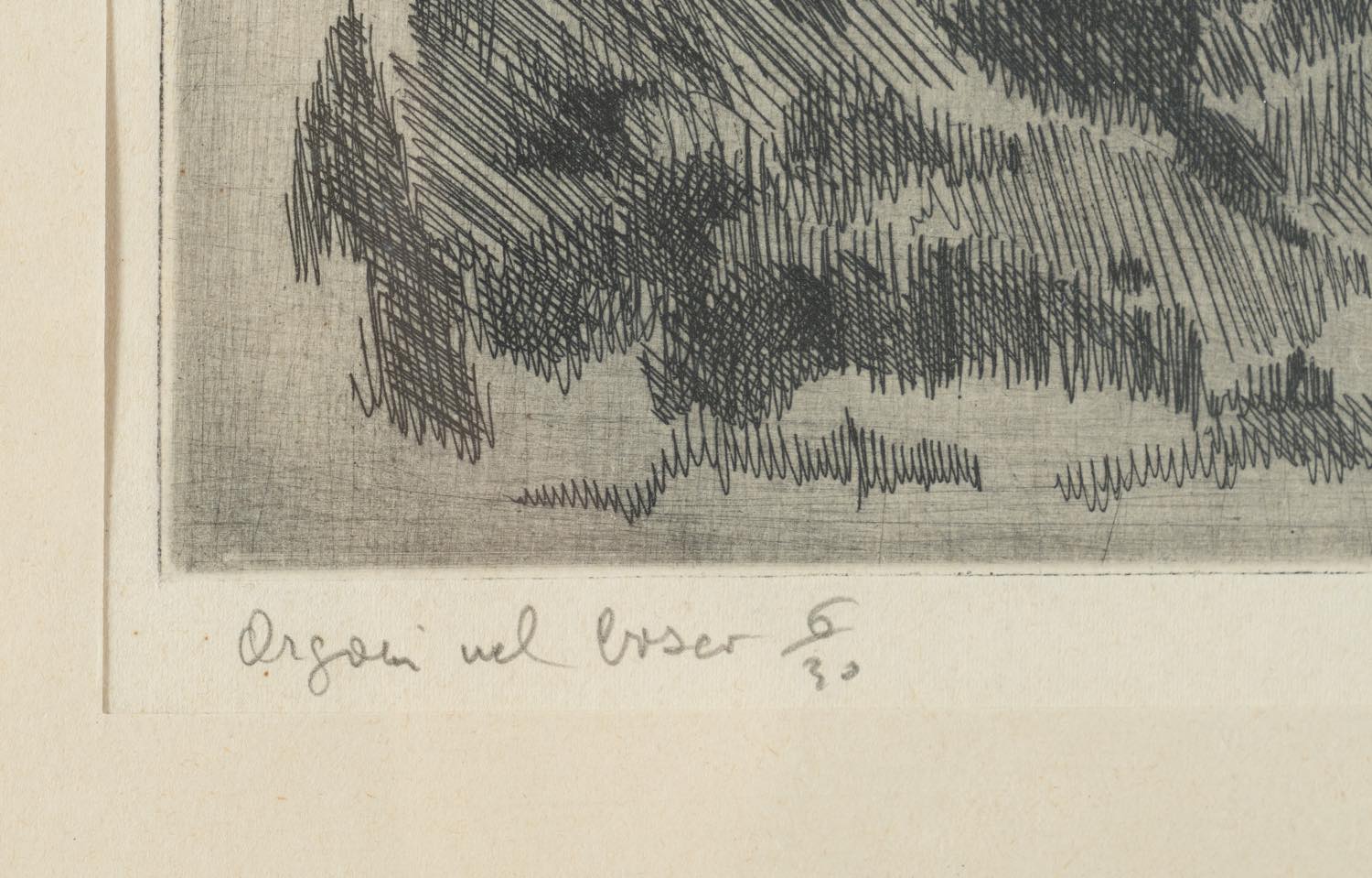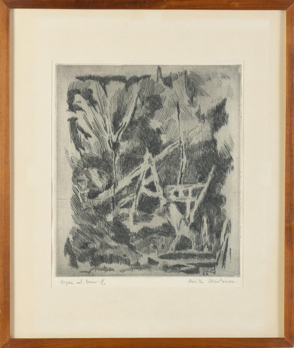 Militza Montanari (XX-XXI secolo), “Organi del bosco”, 1962. Litografia su carta, firmata e datata sulla lastra in basso a destra, reca firma a matita in basso a destra e titolo e numero di tiratura 6/30 in basso a sinistra, Lastra H cm 32x28