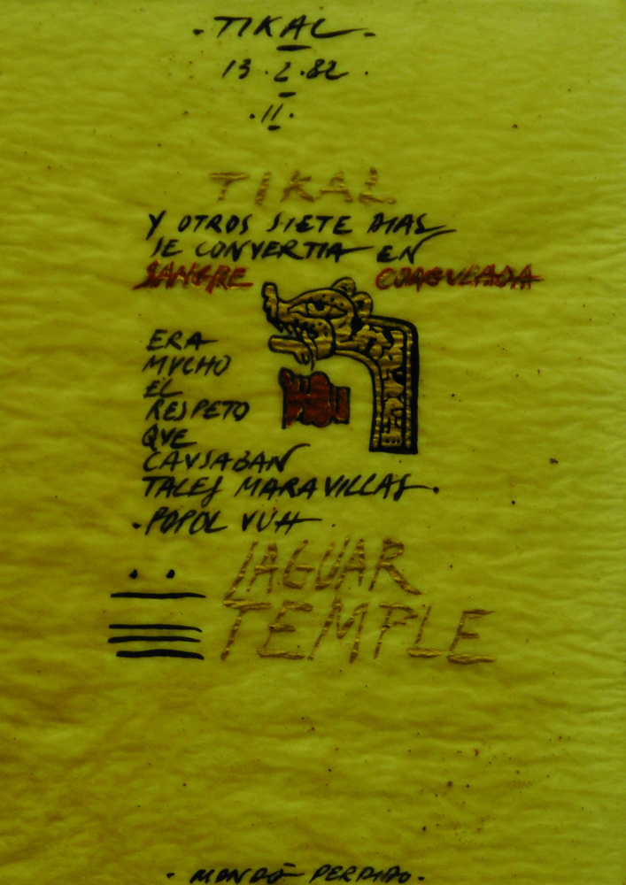 Firmato. ANNE & PATRICK POIRIER (1967) - " Tikal ", 1982, Tecnica mista su pergamena, cm. 23 x 16,5. Firmato sul retro. Prov. Collezione Privata
