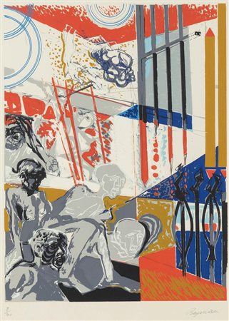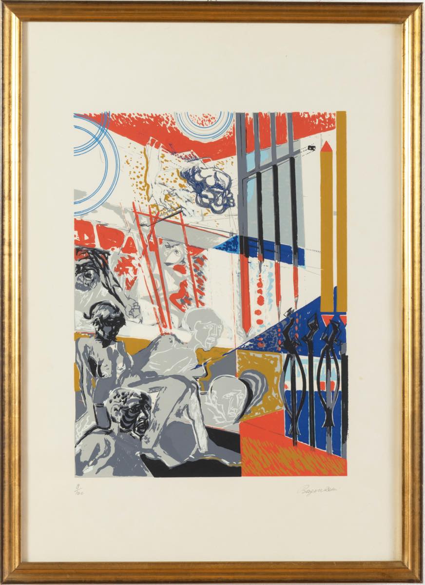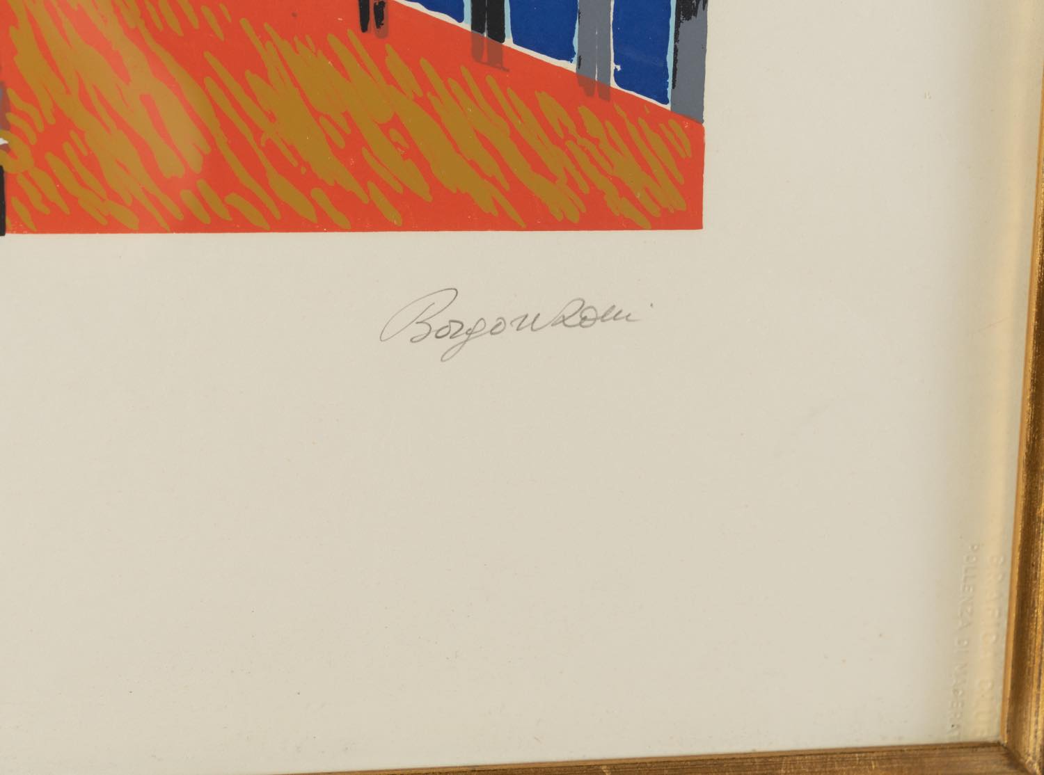 Aldo Borgonzoni (Medicina 1913 – Bologna 2004), “Senza titolo”. Litografia a colori su carta, firmata in basso a destra, numero di tiratura in basso a sinistra 9/100, Lastra H cm 46.5x35