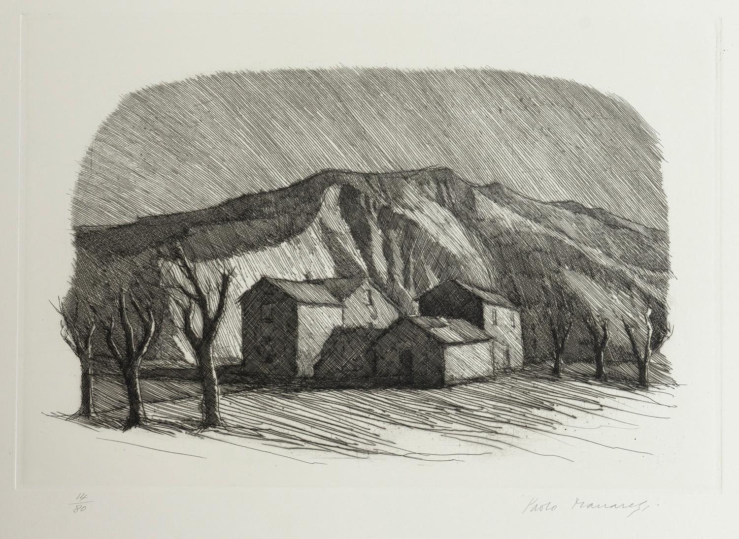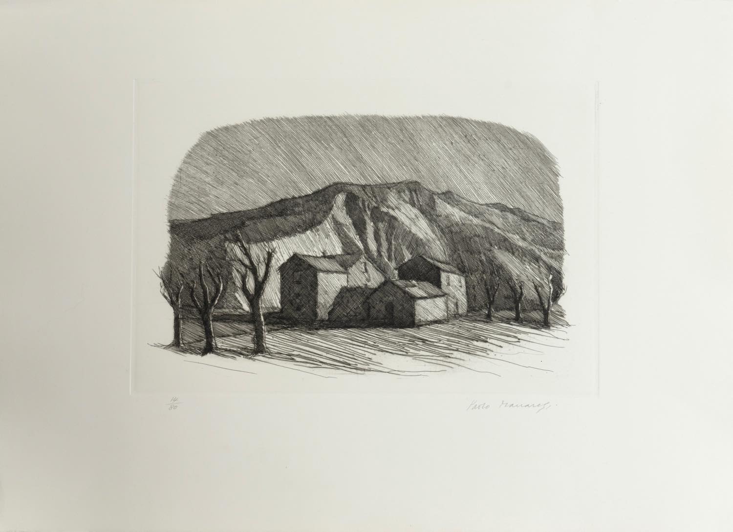 Paolo Manaresi (Bologna 1908 – 1991), “Paesaggio”. Incisione su carta, firmata in basso a destra, numero di tiratura in basso a sinistra 14/80, Lastra H cm 29.5x43.5