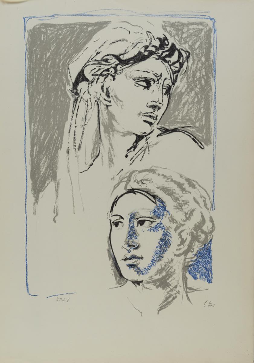 Alberto Sughi (Cesena 1928 - Bologna 2012), “Visi di donne”. Litografia a colori su carta, reca firma in basso a sinistra, numero di tiratura in basso a destra 6/100, Foglio H cm 70.5x49.5 Provenienza: Galleria Forni - Bologna