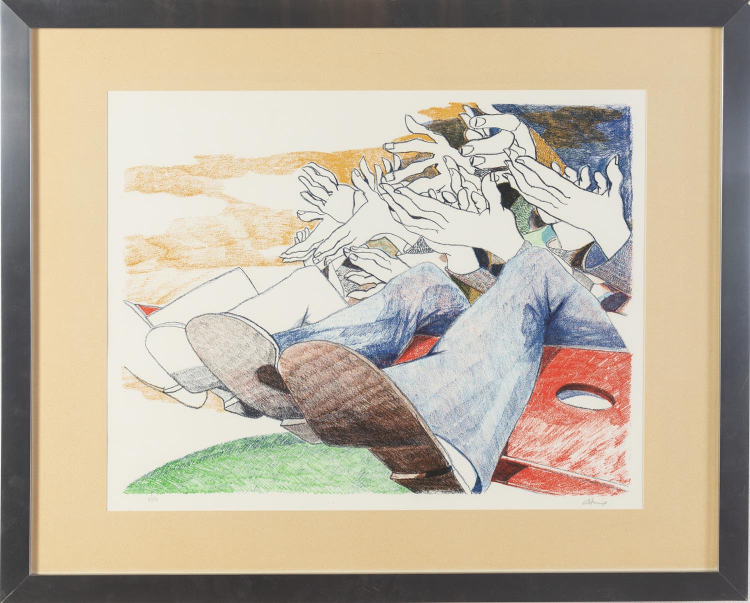 Ennio Calabria (Tripoli 1937 – Roma 2024), “Senza titolo”. Litografia a colori su carta, firmata in basso a destra, numero di tiratura in basso a sinistra 69/90, Foglio H cm 64x80