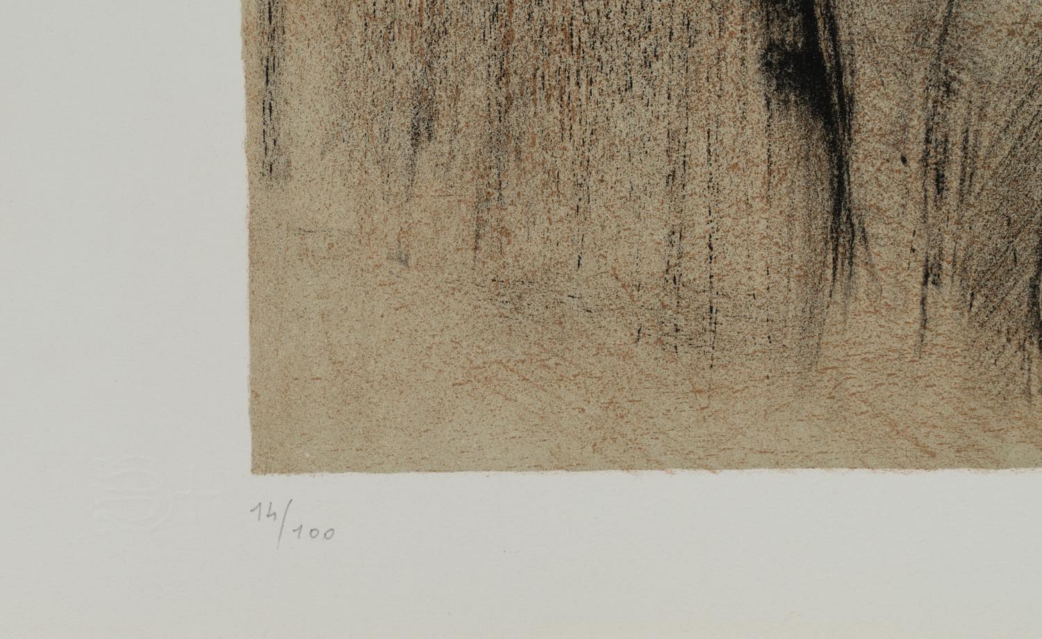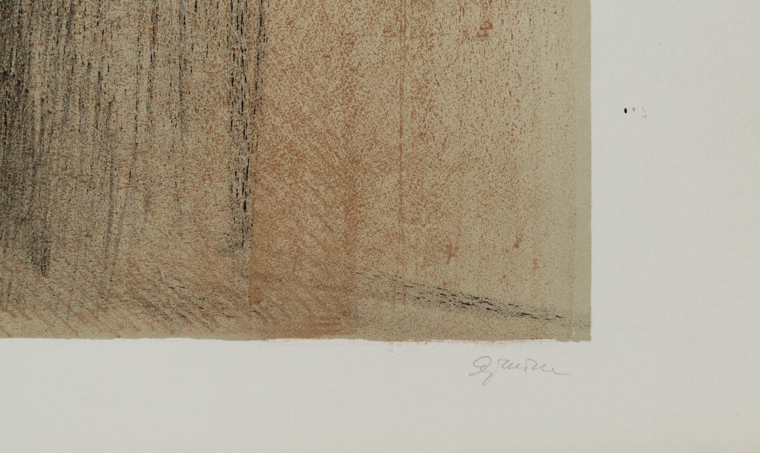 Giuseppe Ajmone (Carpignano Sesia 1923 - Romagnano Sesia 2005), “Nudo di schiena”. Litografia a colori su carta, firmata in basso a destra, numero di tiratura in basso a sinistra 14/100, Foglio H cm 70.5x49.5 Provenienza: Galleria Forni - Bologna