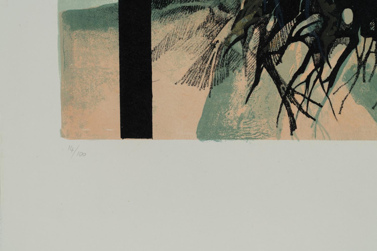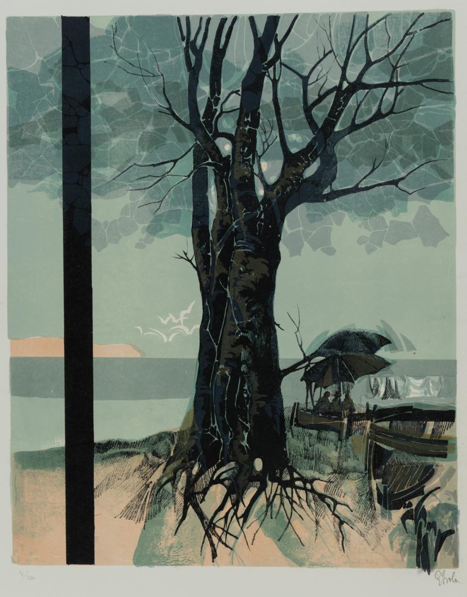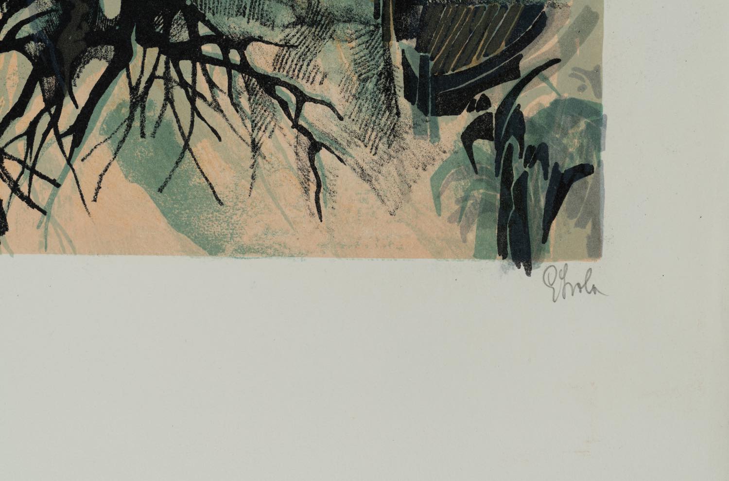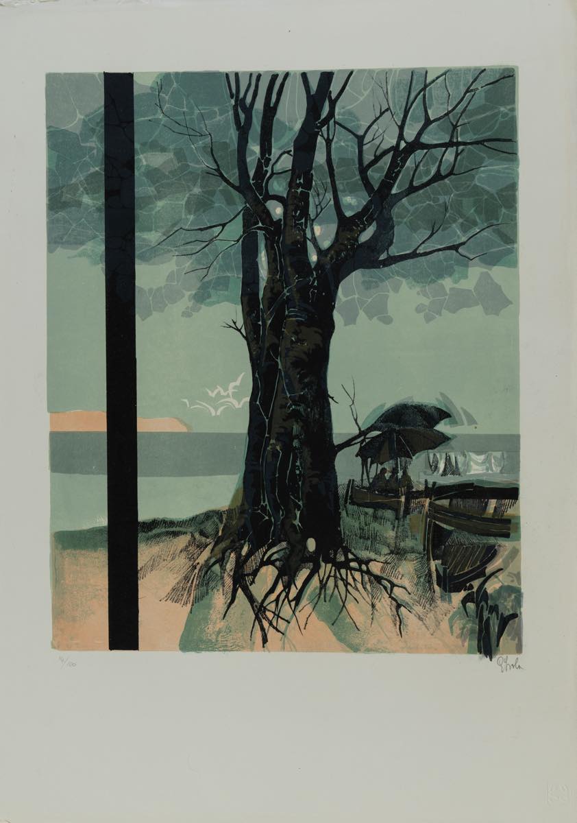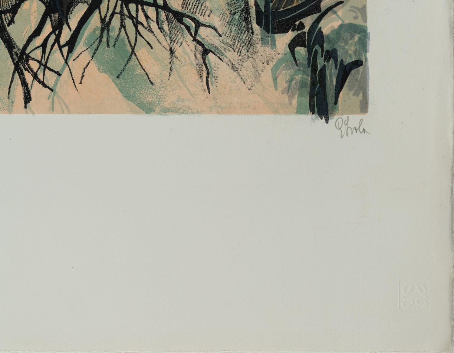 Giancarlo Isola (Livorno 1927 - Roma 2018), “Marina”. Litografia a colori su carta, reca firma in basso a destra e numero di tiratura in basso a sinistra 14/100, Foglio H cm 72x51 Provenienza: Galleria Forni - Bologna