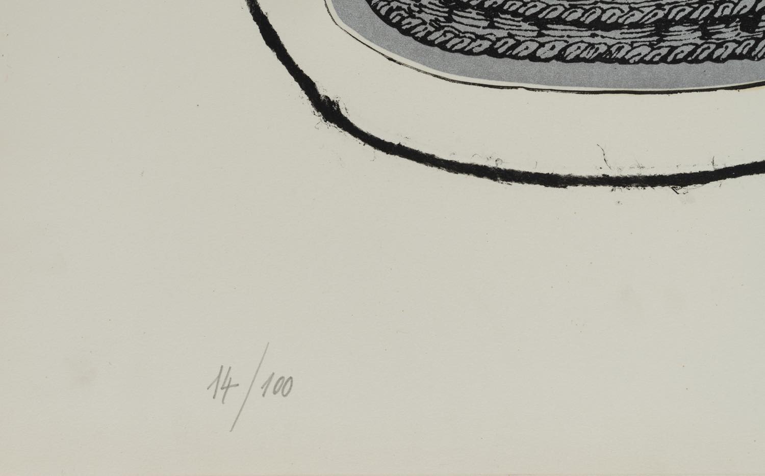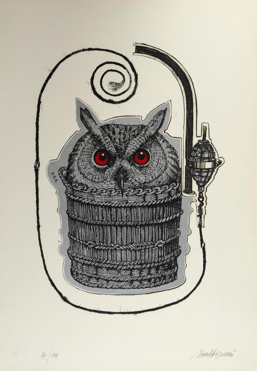 Valeriano Trubbiani (Macerata 1937), “Per grazia richiesta”. Acquaforte a colori su carta, firmata in basso a destra, numero di tiratura in basso a sinistra 14/100, Foglio H cm 69.5x49 Provenienza: Galleria Forni - Bologna
