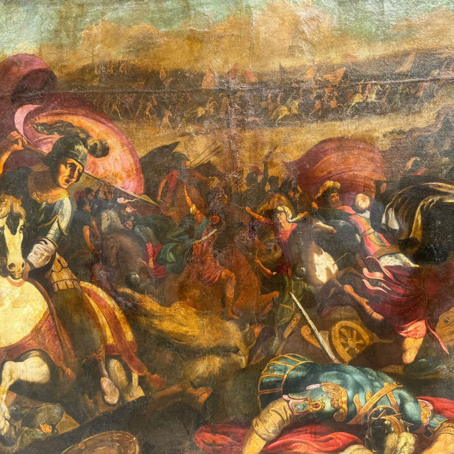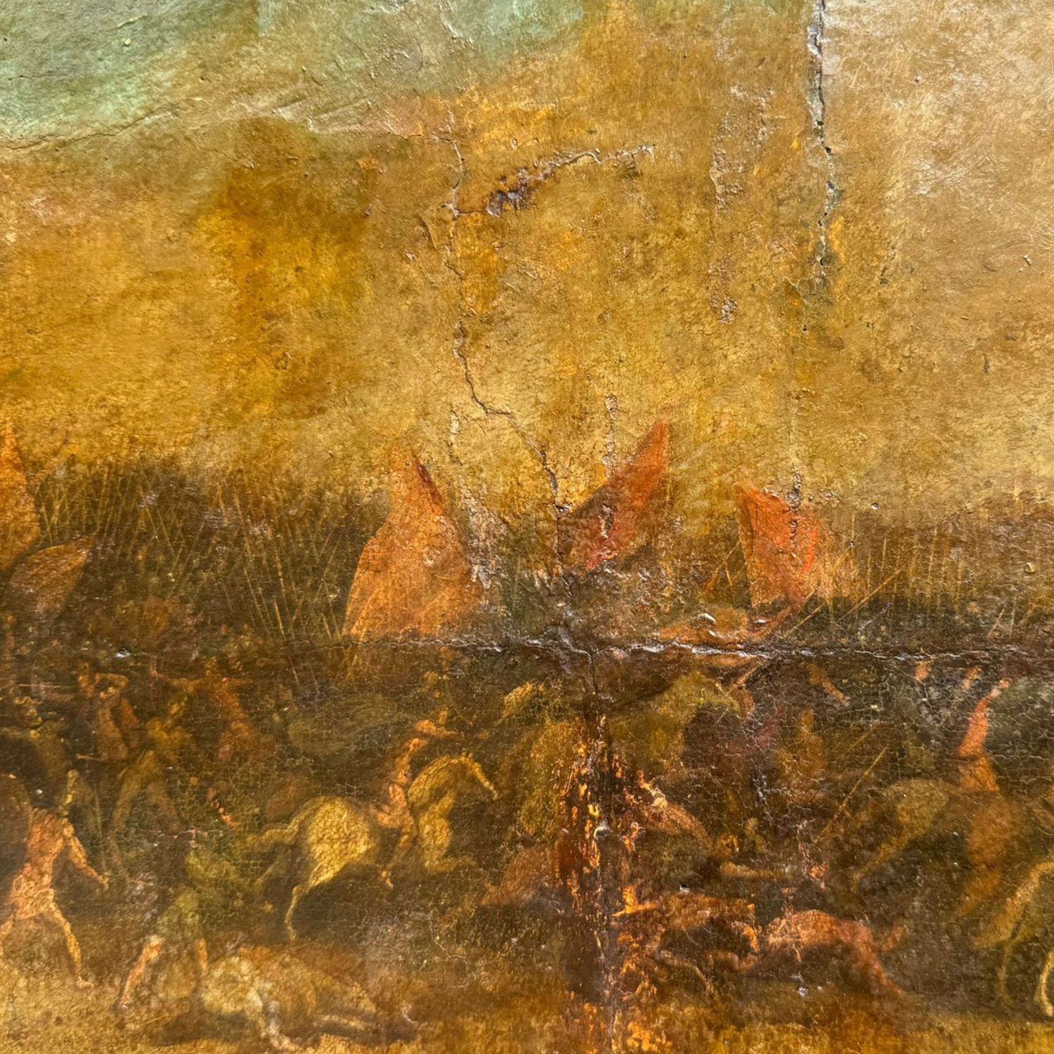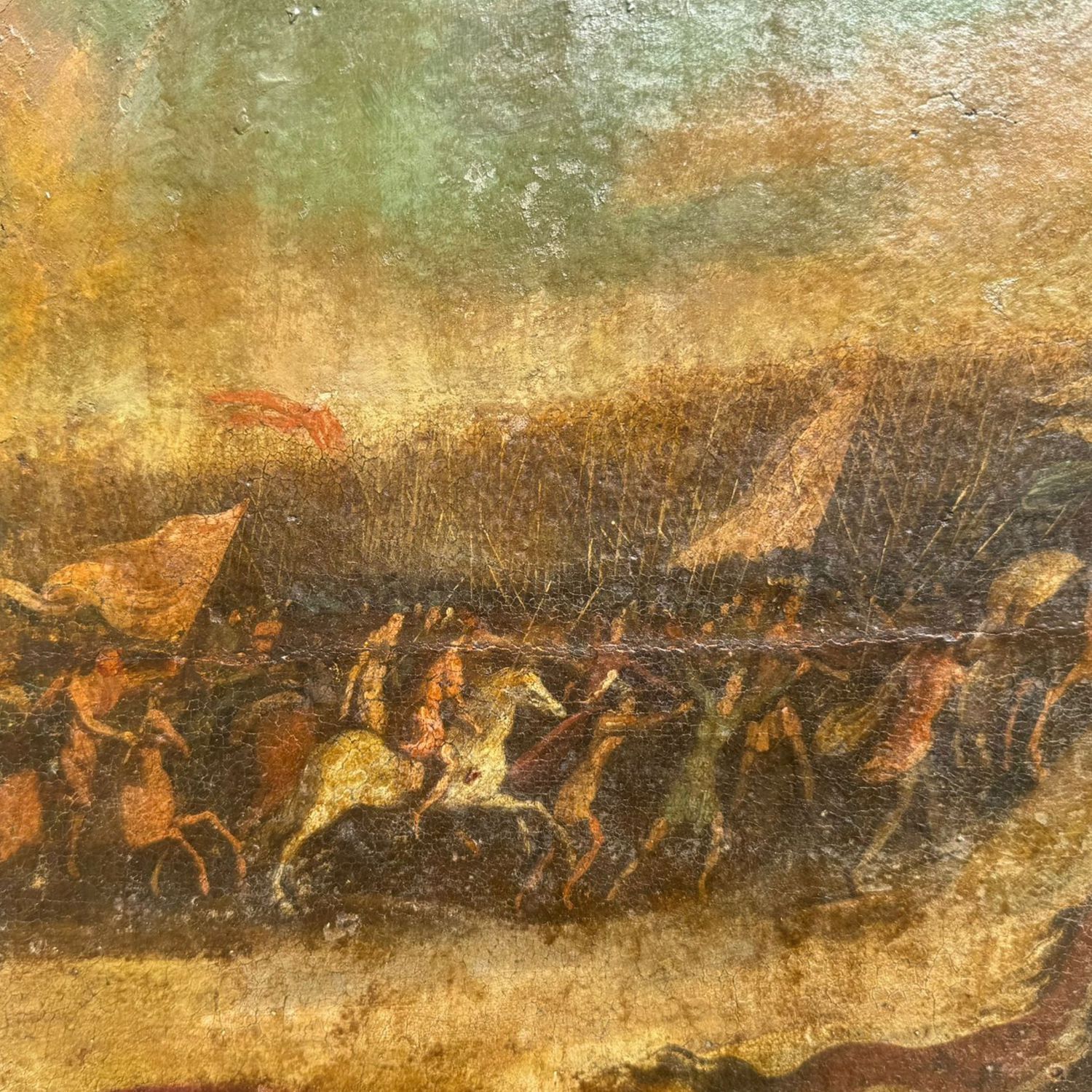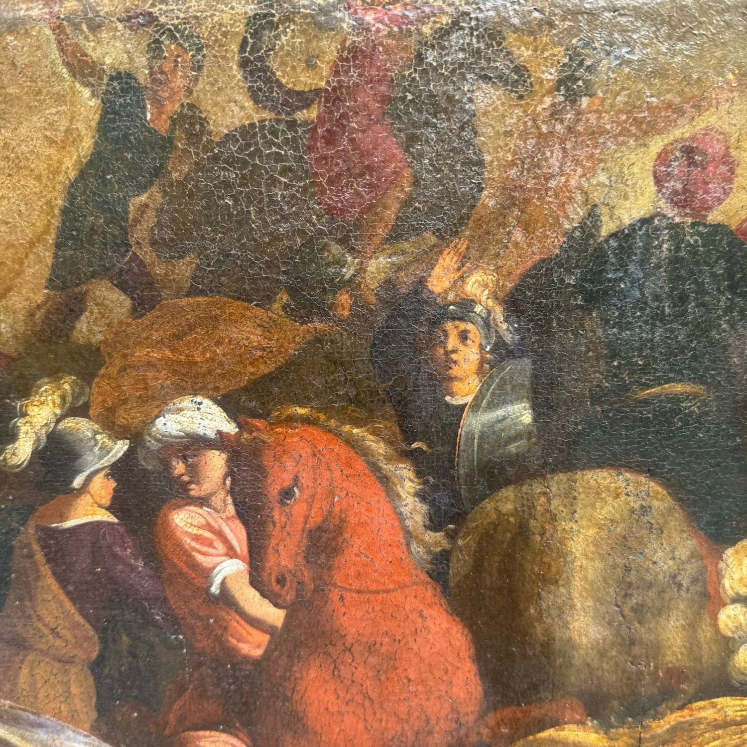 Dipinto olio su tela, periodo XVI/XVII secolo scuola Italiana, raffigurante Scena di battaglia.