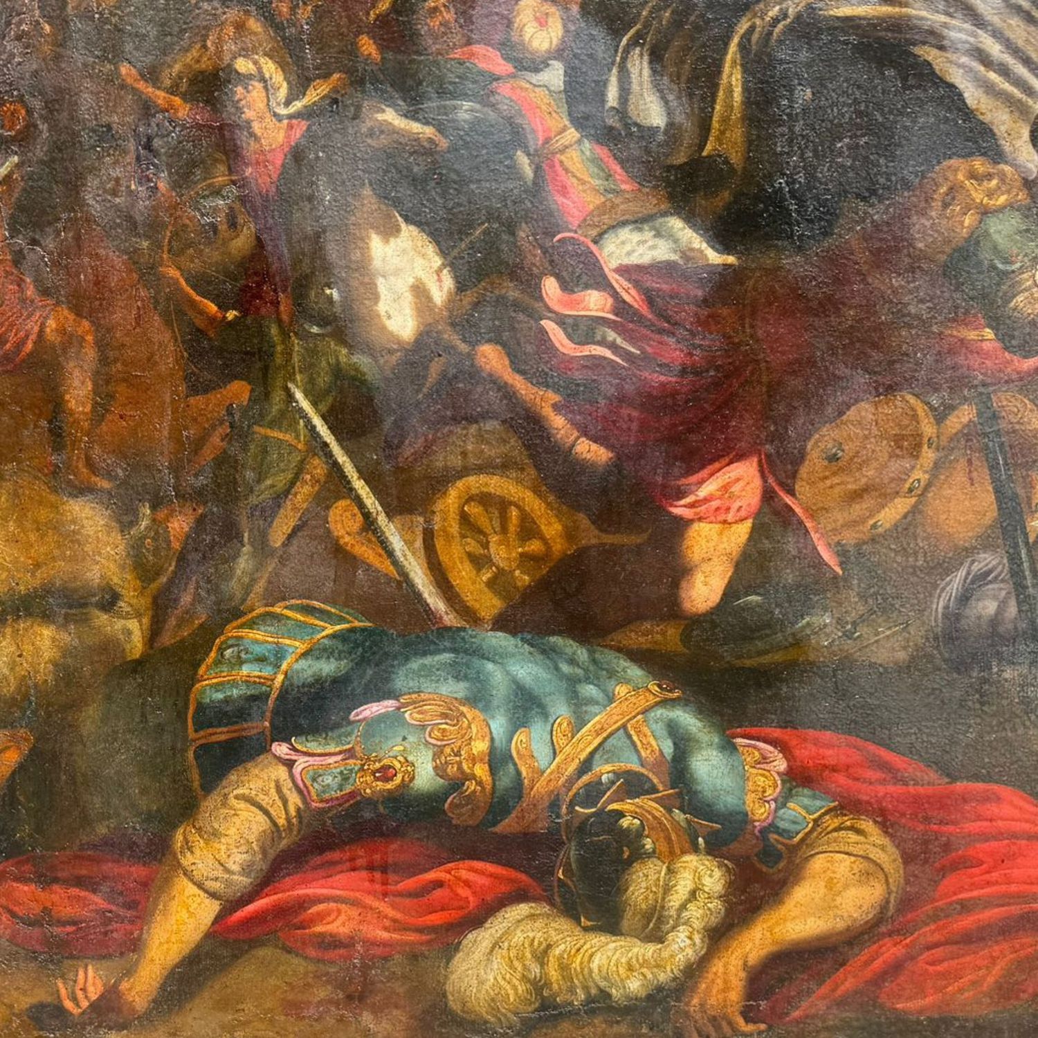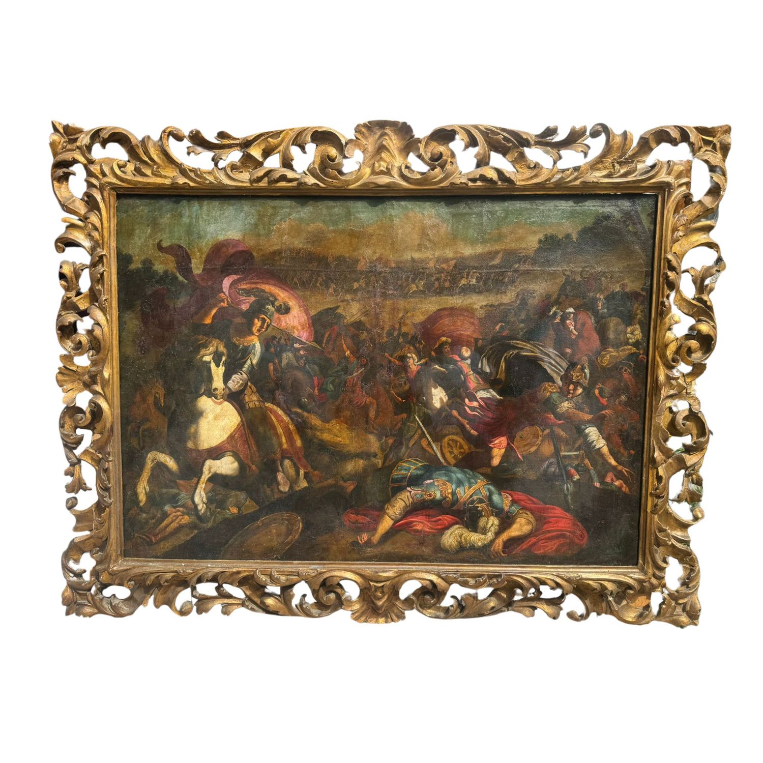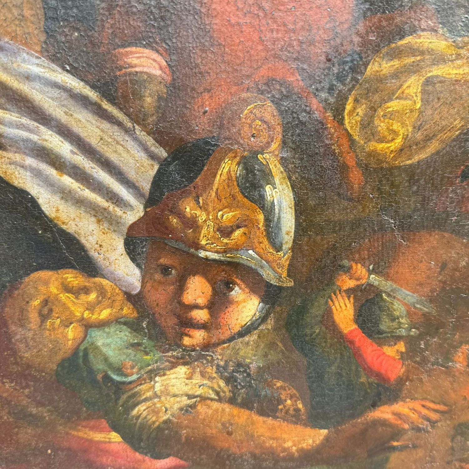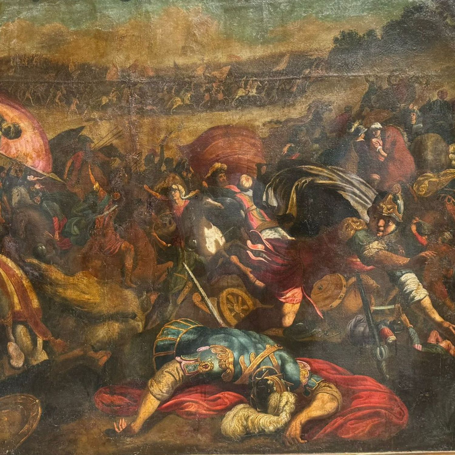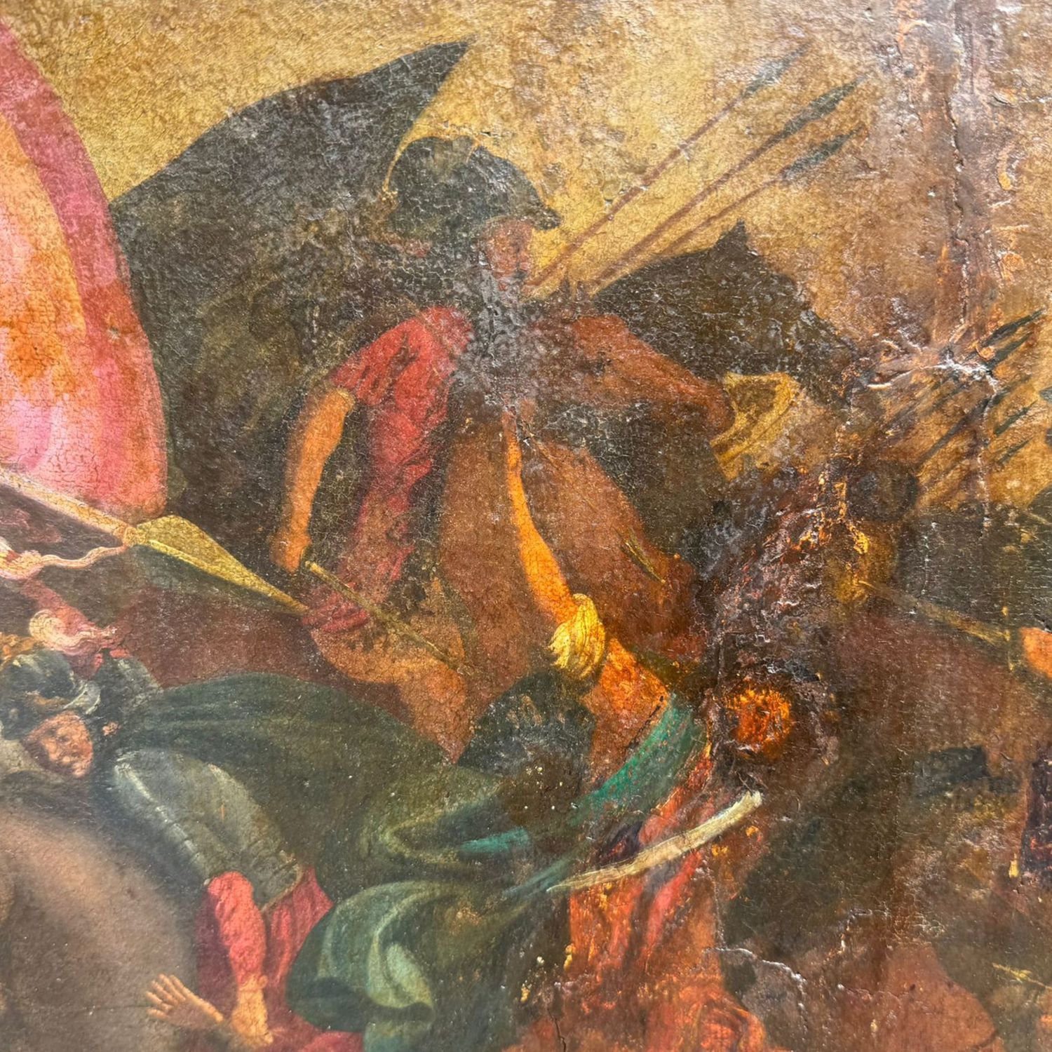 Dipinto olio su tela, periodo XVI/XVII secolo scuola Italiana, raffigurante Scena di battaglia.