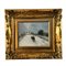 Dipinto olio su tavola, periodo XX secolo scuola italiana, raffigurante Strada di campagna con personaggio e asino.